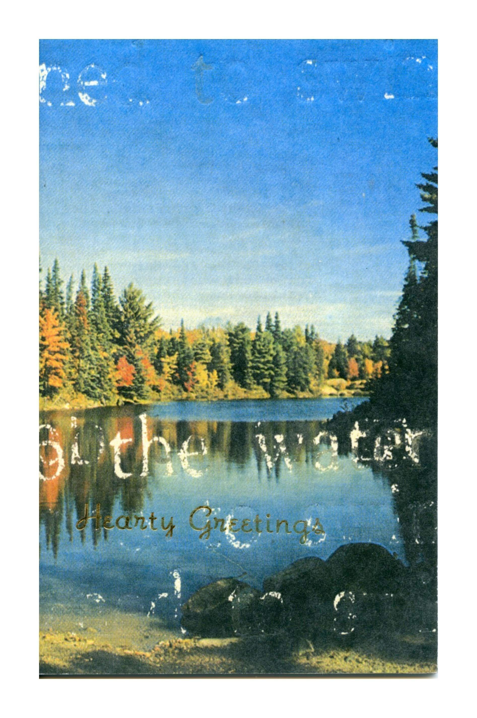 A small booklet with a lake view with trees and the title written in gold lettering.