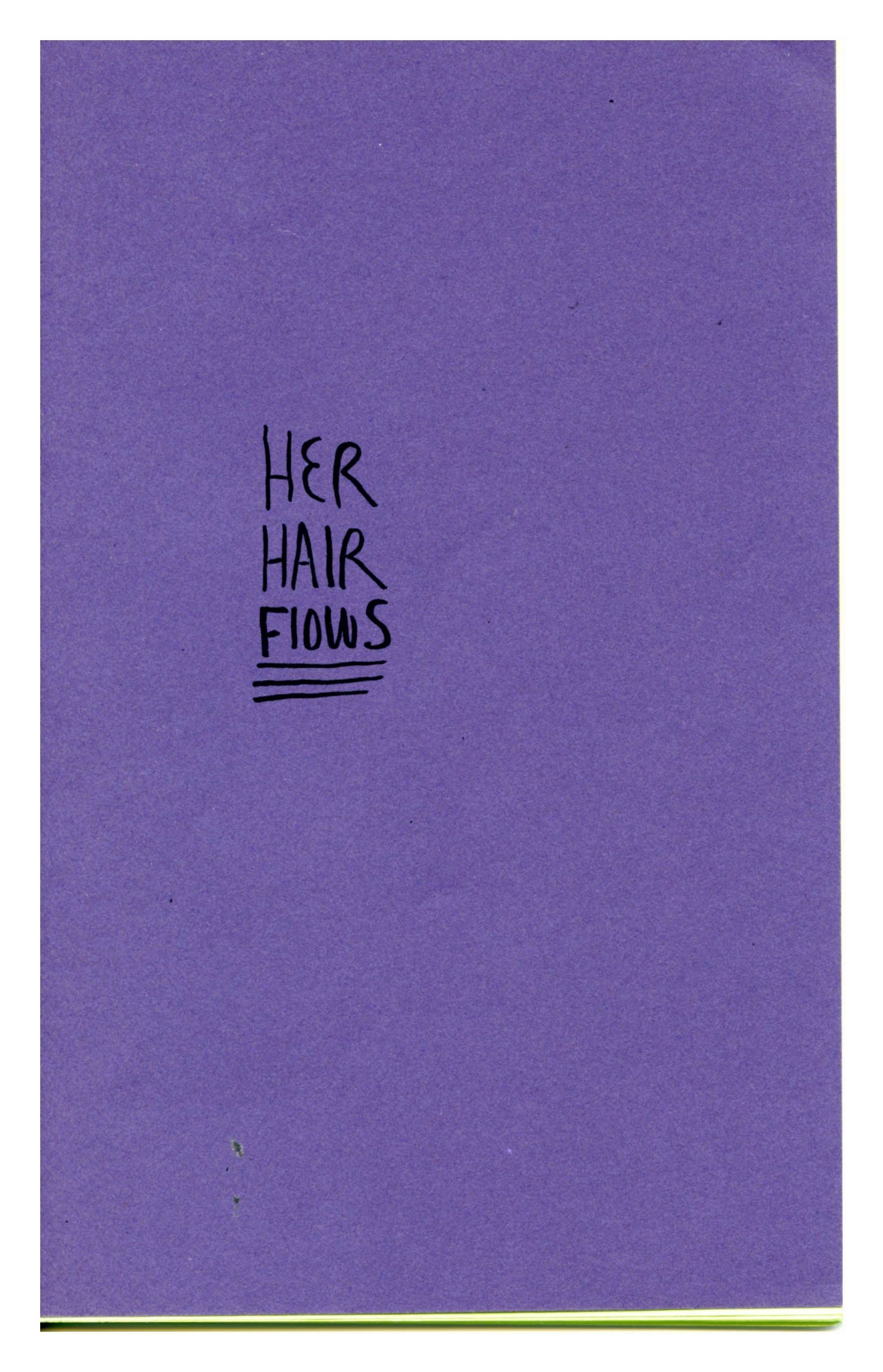 Dark purple paper cover with neon green and white inner pages. Title is written in black ink off center.Collection