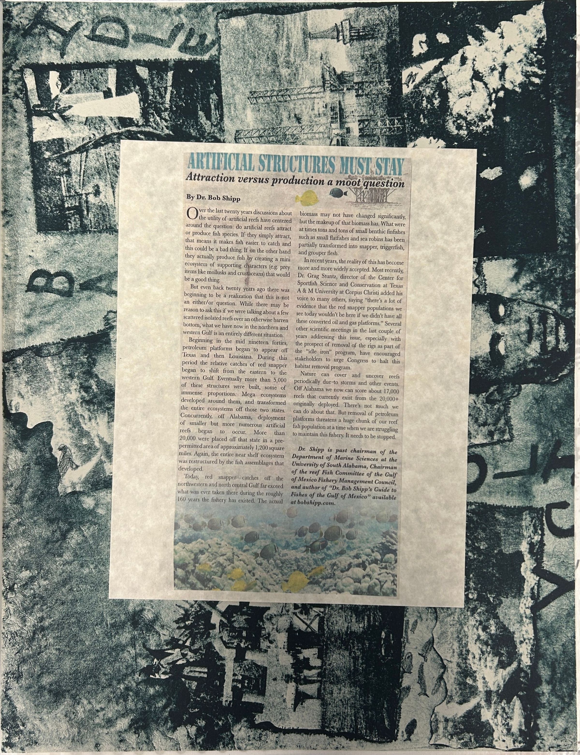 A large print of various articles discussing pollution in ocean environmentsCollection