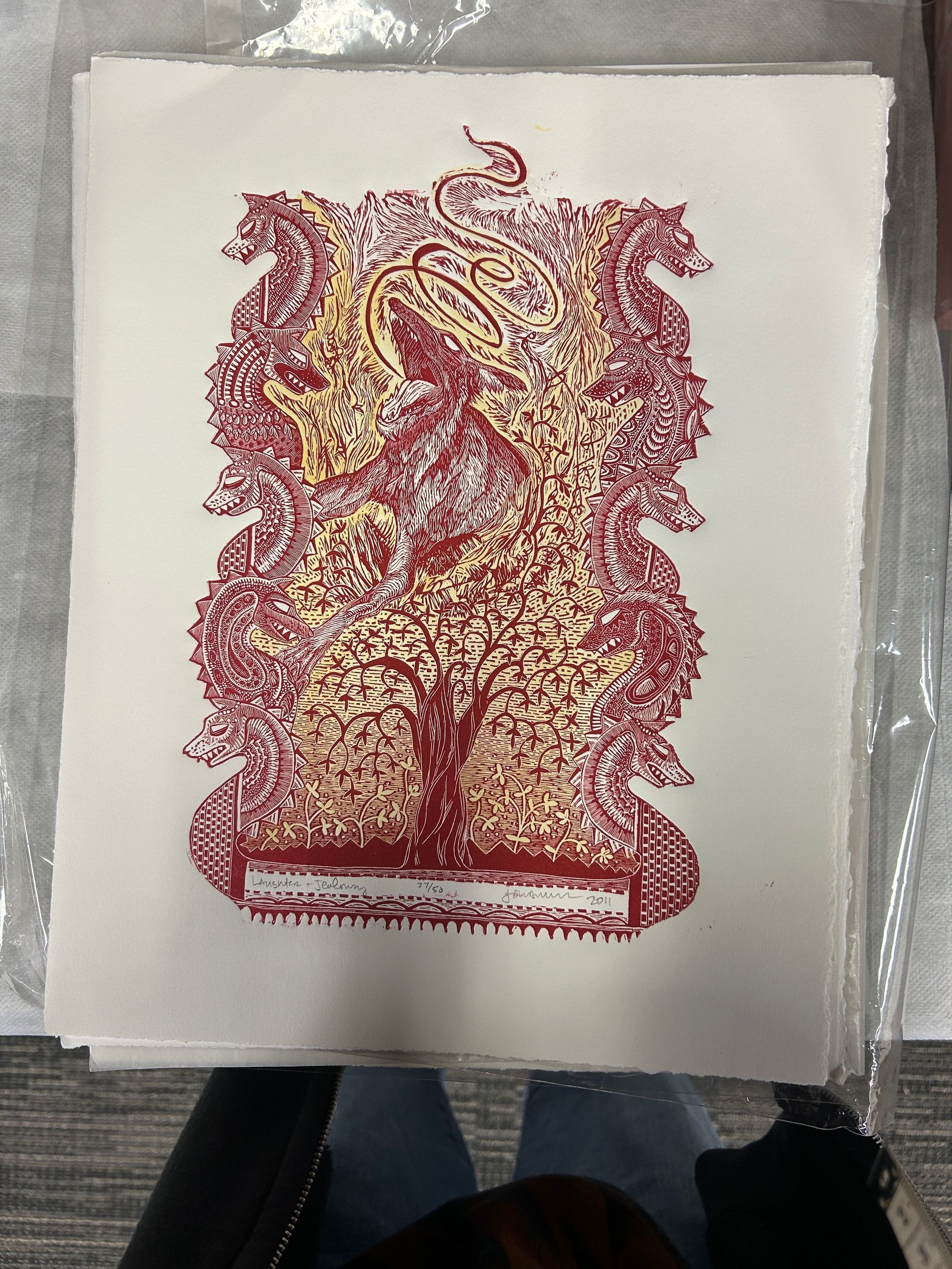 A large print of a wolf and dragonsCollection