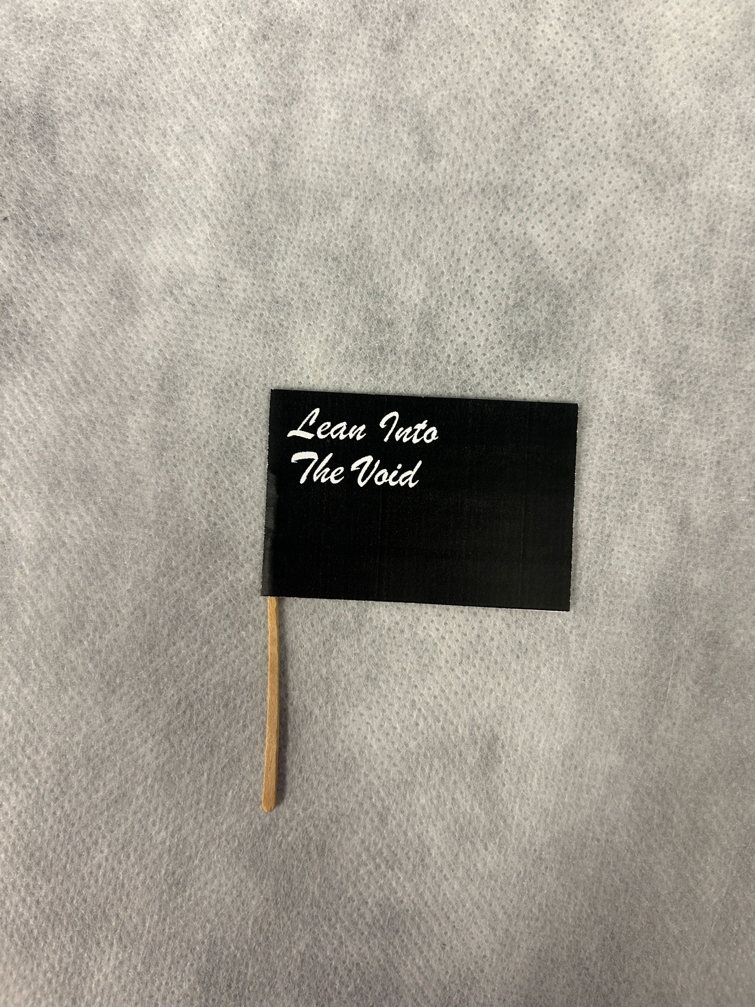 A small black and white flag that reads "Lean Into The Void"Collection