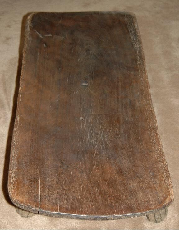 Long rectangular wooden curved plank with four short legsCollection