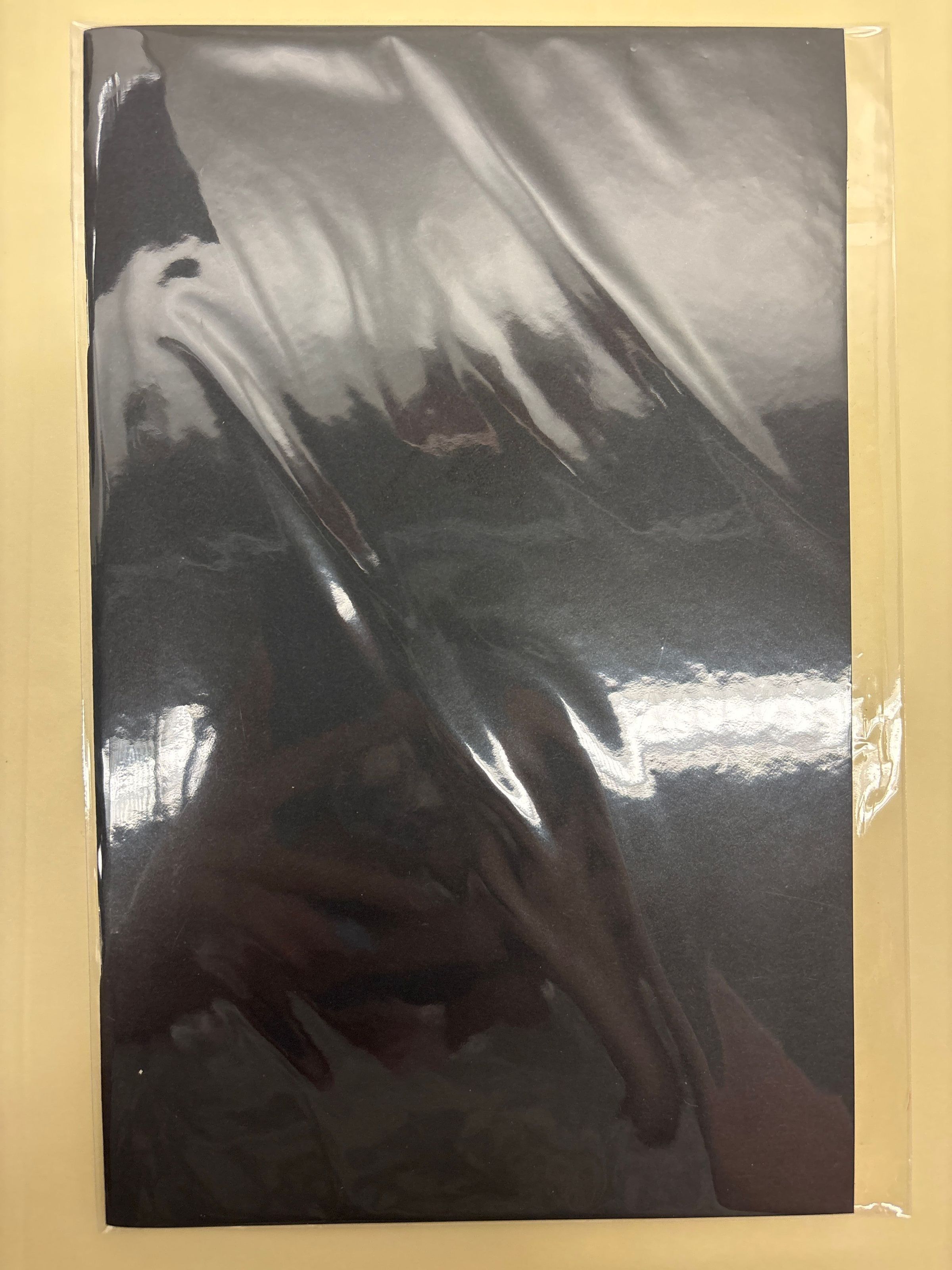 The front cover is made of black paper with an even darker black flag on the front and back. The interior pages are also black with shiny black lettering.Collection