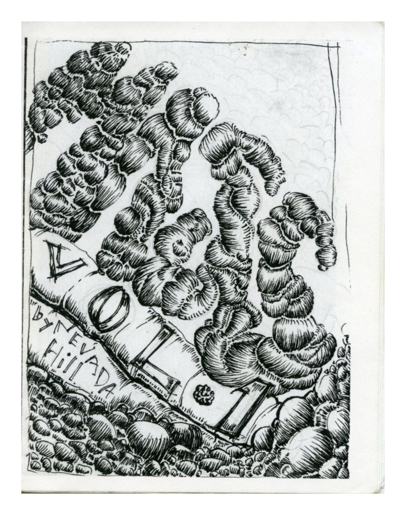 A small booklet of 12 pages, including cover, with black ink on white paper. The cover depicts the title with hatching shading, with 'Mass' as smoke and 'Vol. 1' as an industrial pipe.Collection