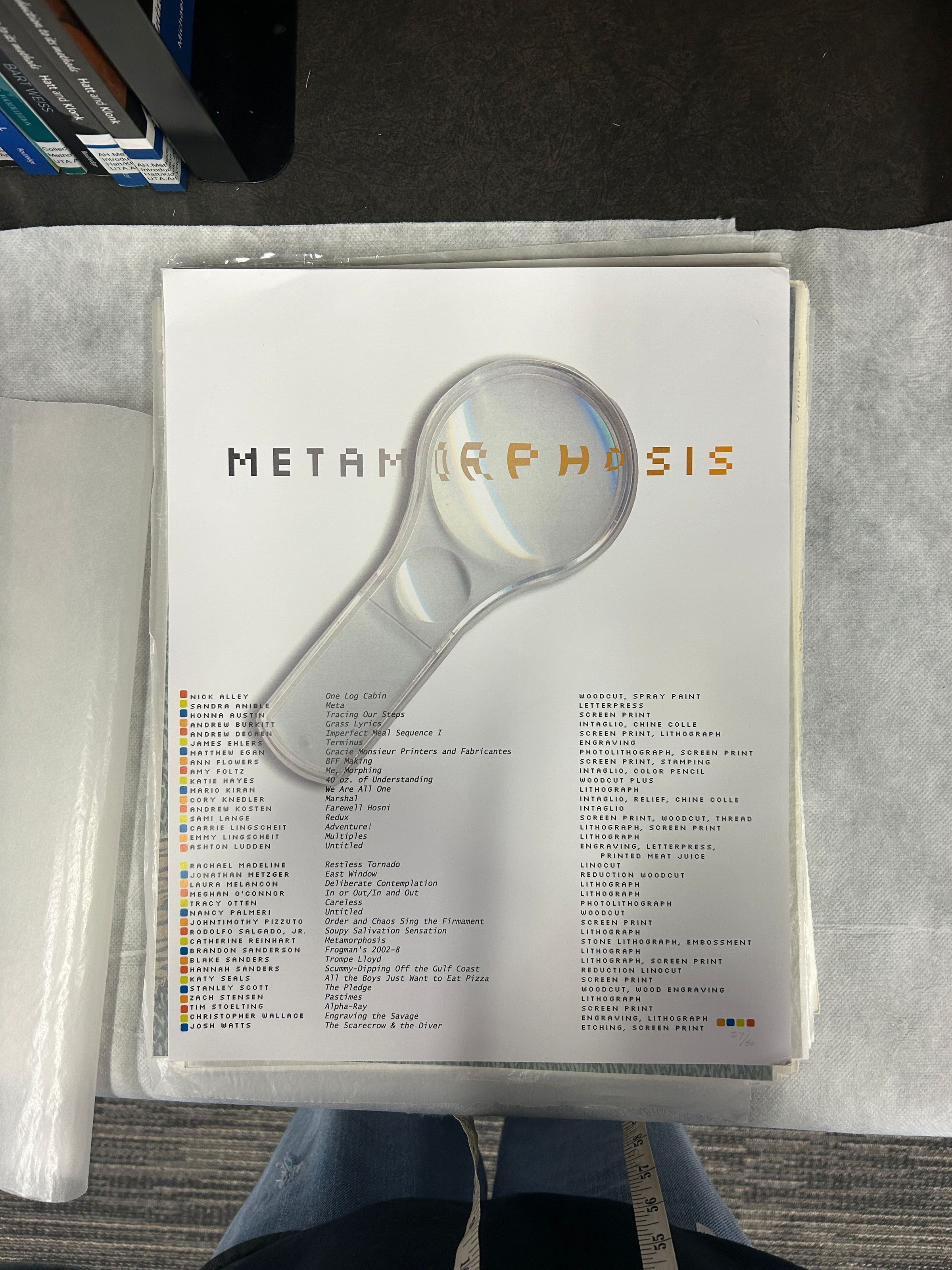 A large print of a listing of artists, titles, and mediums included in the "Metamorphosis" seriesCollection