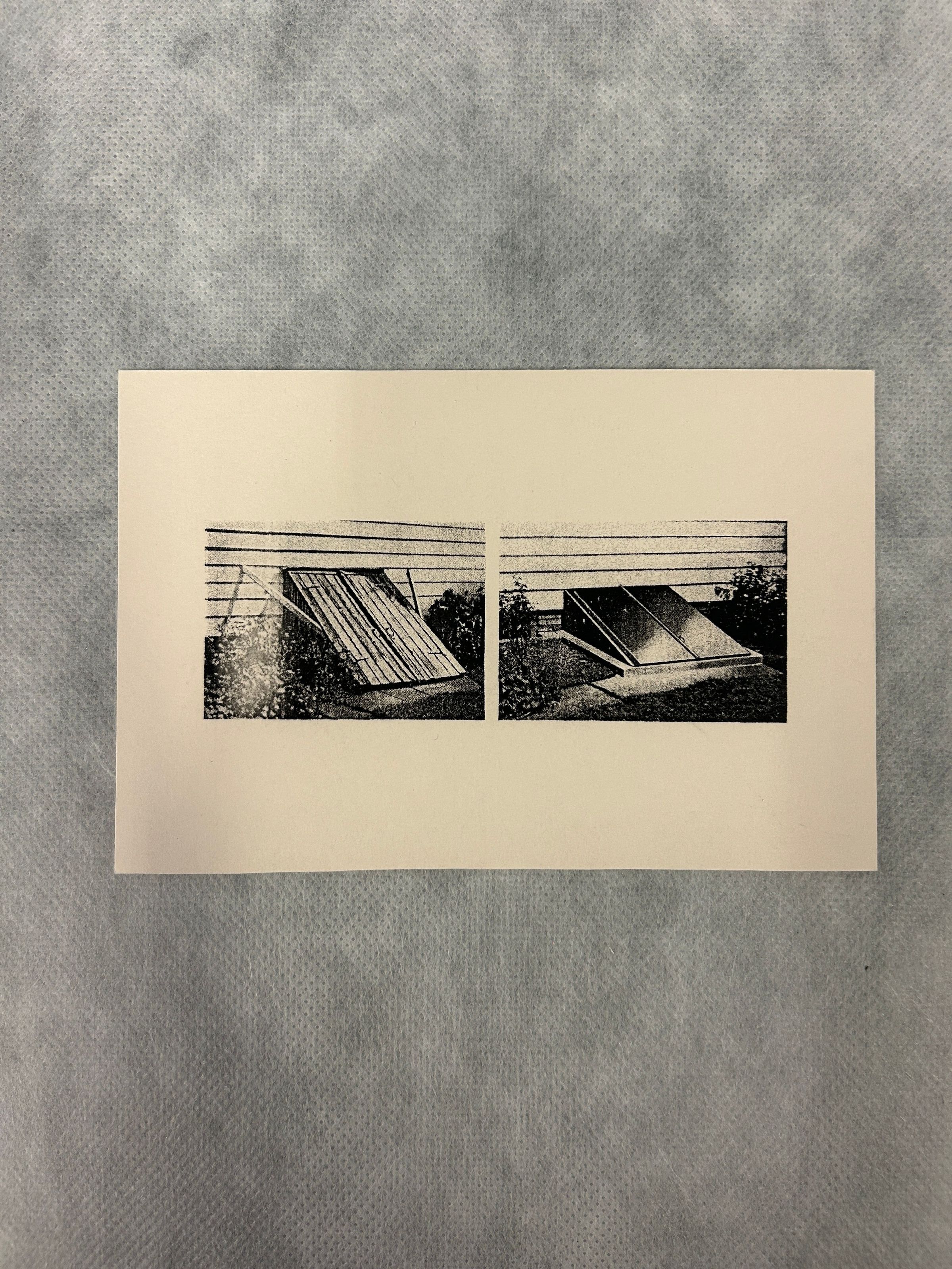 A small black and tan print of two basements side by sideCollection