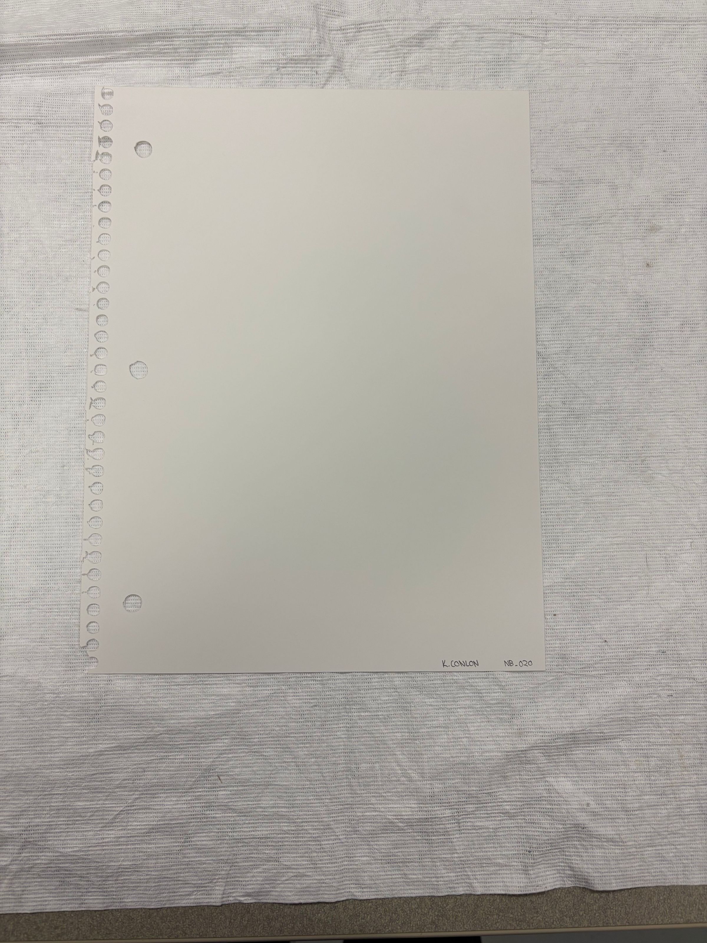 A vertically oriented, standard letter sized print that is solid white. The print is blank and is composed to mimic a blank piece of paper.Collection