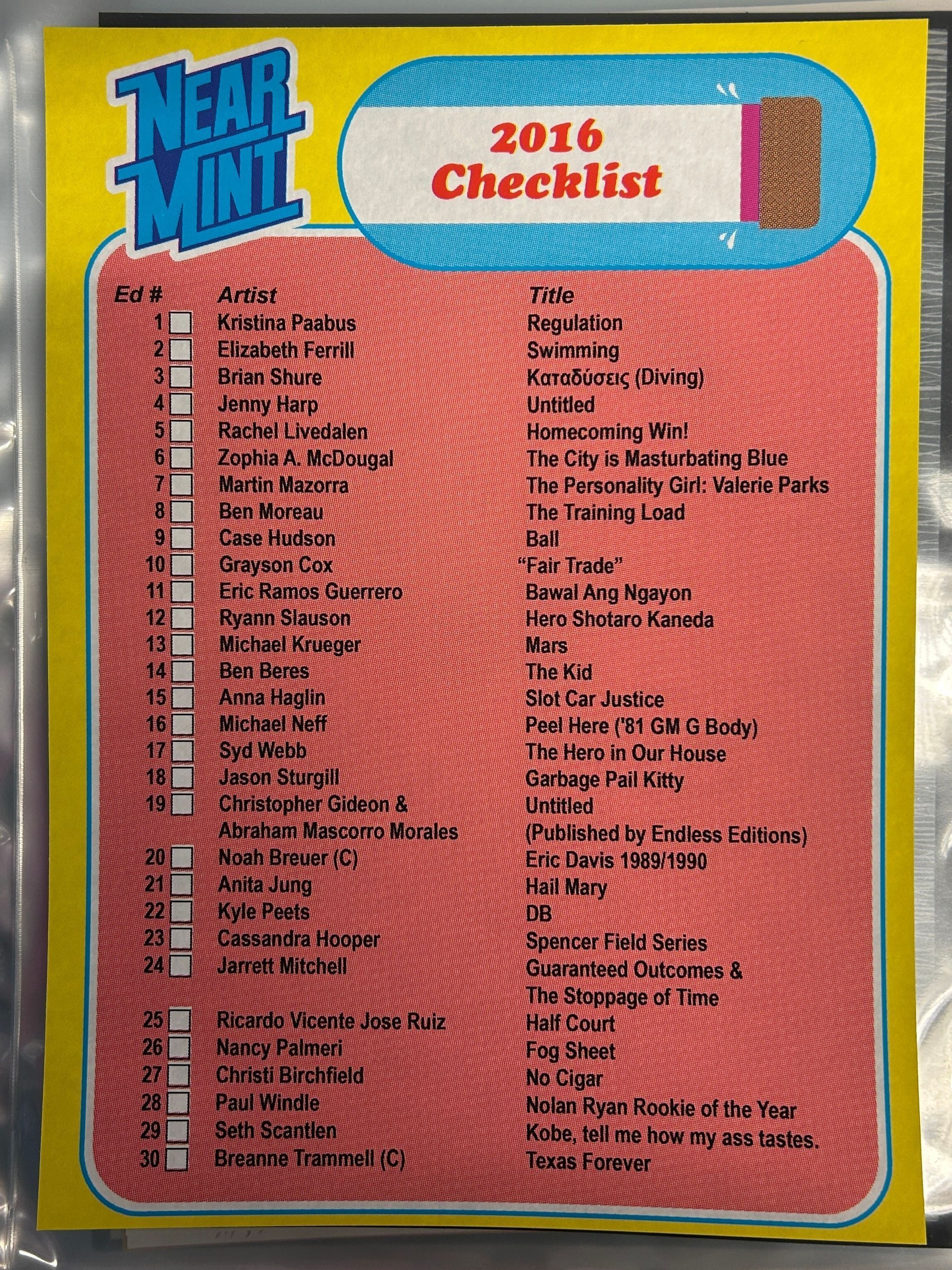 Near Mint, Checklist 2016Entry/Object ID