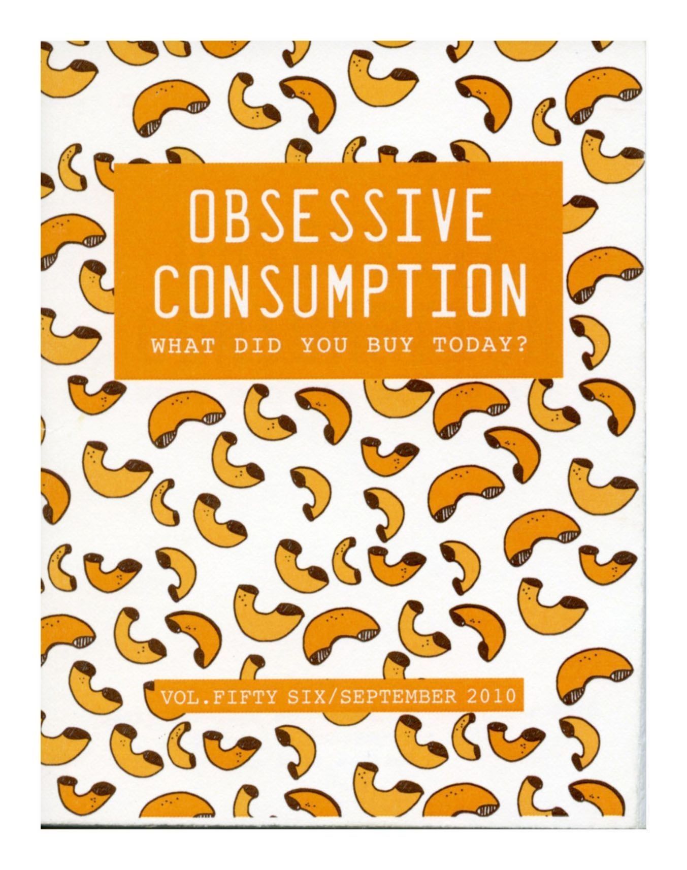 White paged booklet with yellow and orange macaroni background. Title is found inside an orange block at the top of the page, and the volume/date on a smaller orange box at the bottom of the cover.Collection