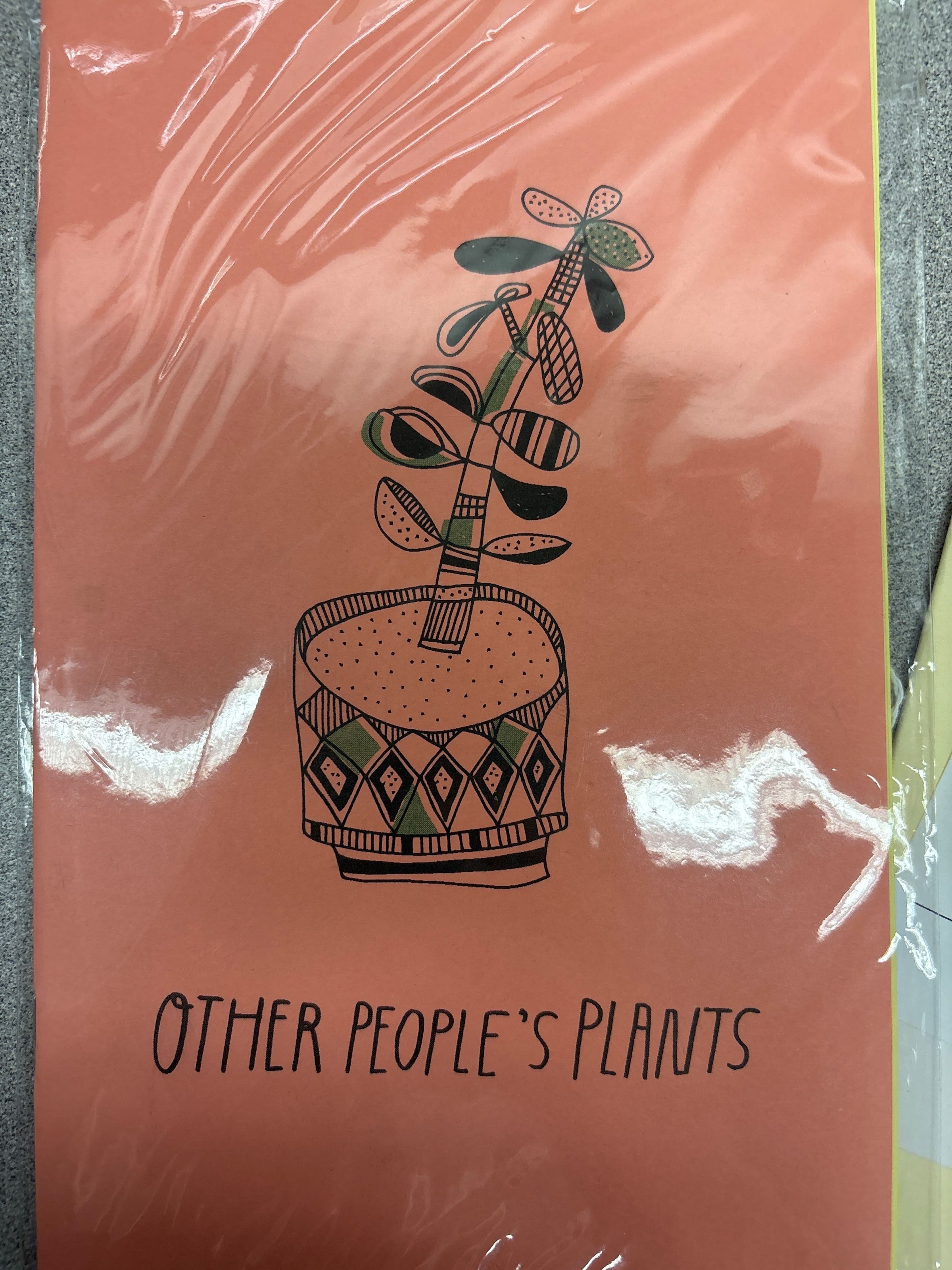 The cover of the book is pink and the interior pages are yellow. The front cover has the image of a potted plant in green and black ink with the title beneath it.Collection