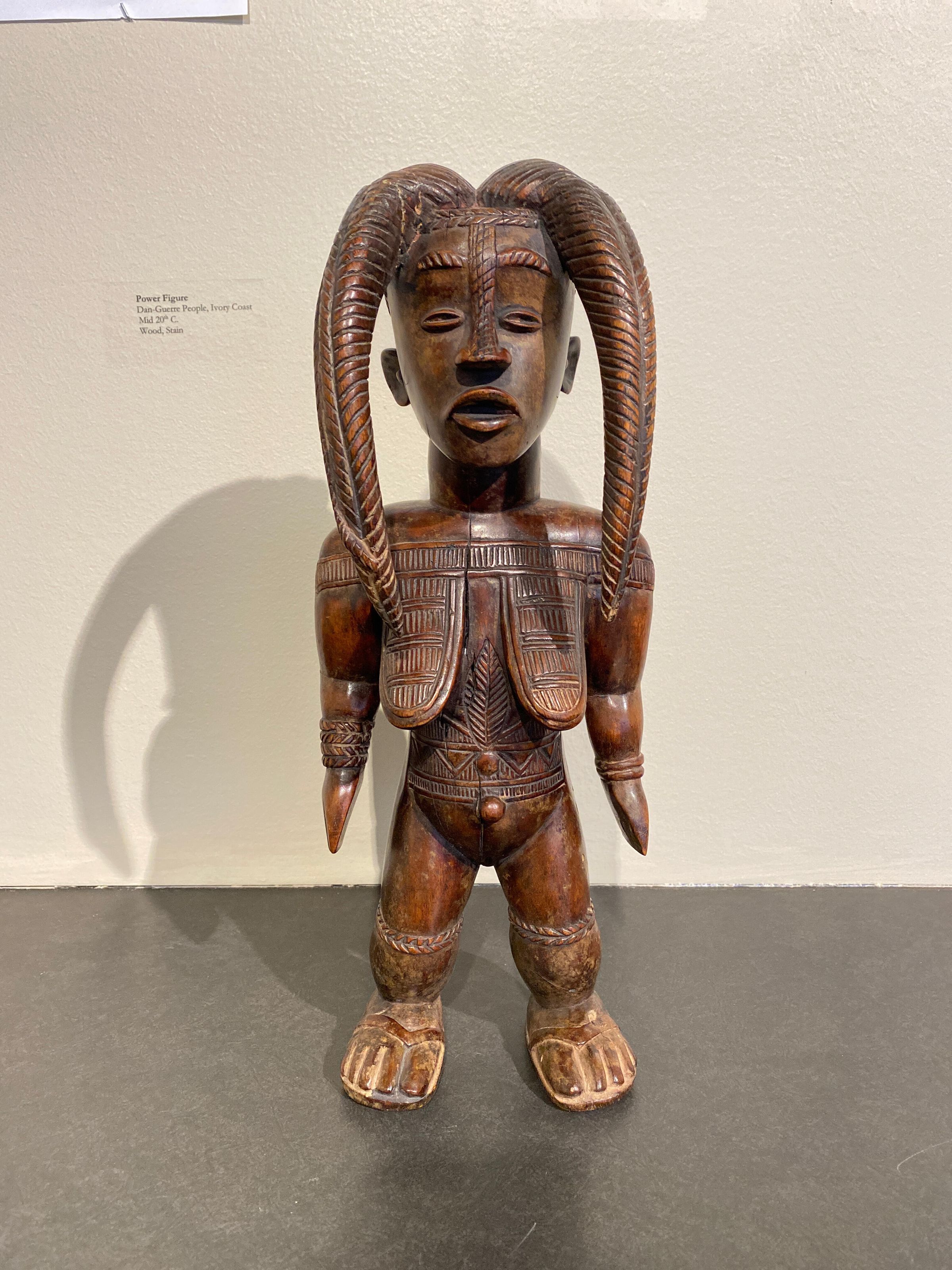 Wooden maternity figure with two long braid of hair.Made/Created