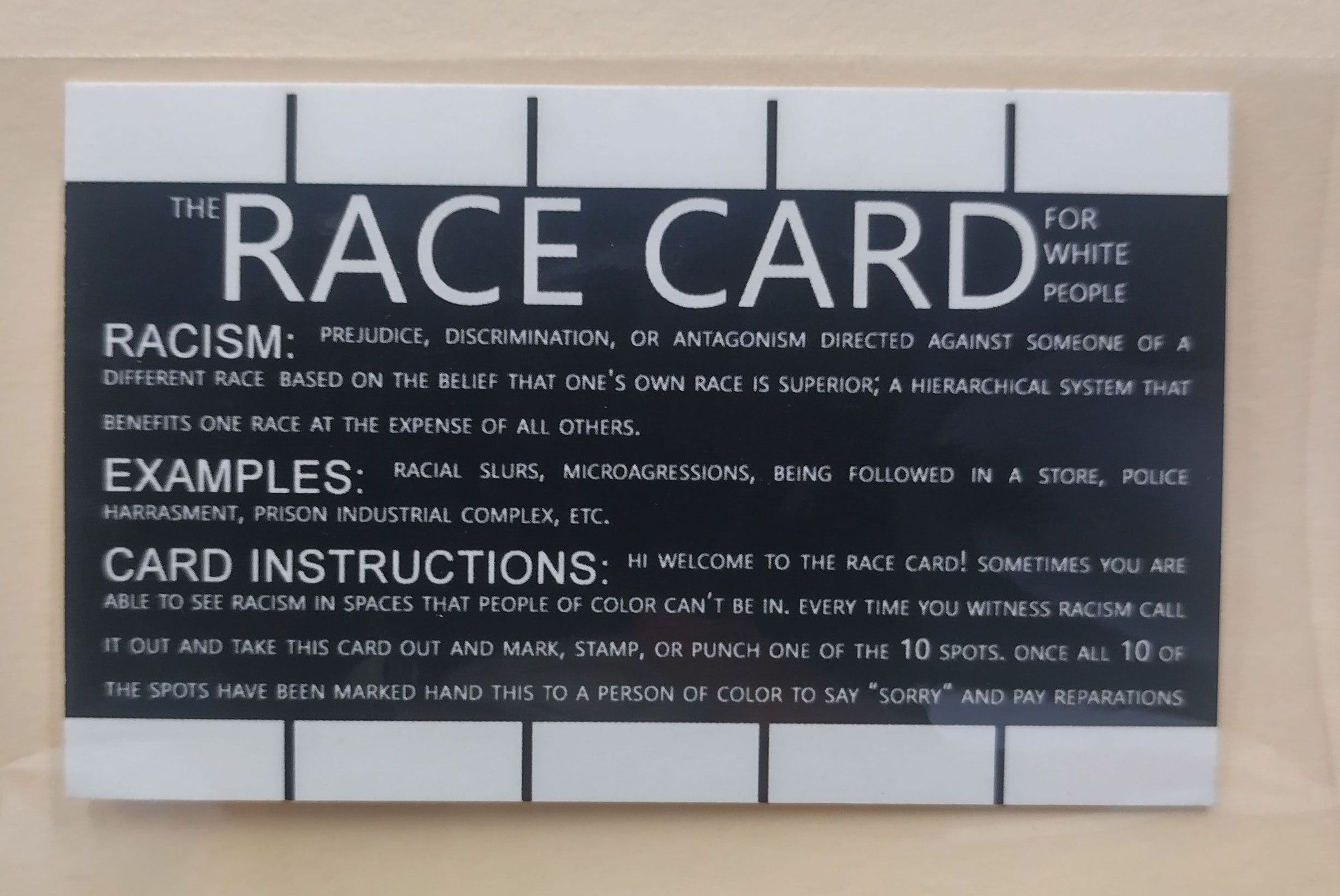 Small black and white card with a series of white rectangles forming a horizontal border across the top and bottom edges (5 on each). Inside that border is white text on top of a black background.Collection