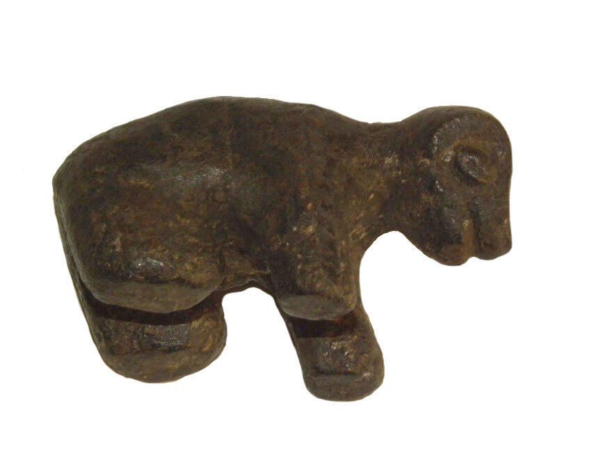 Small stone animal, standing on four legs, with relief-carved curved hornsCollection