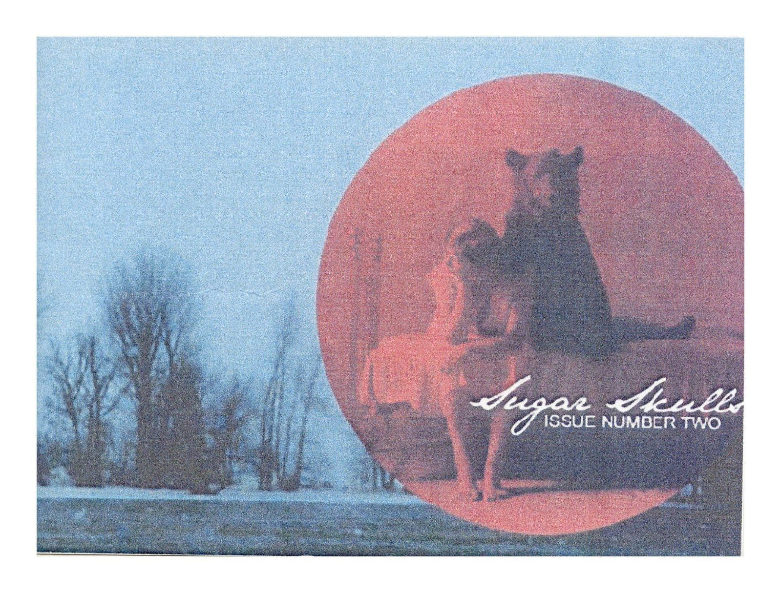 There is a winter lake landscape on the front cover with a circle of a distraught woman n a bed with a dog.Collection