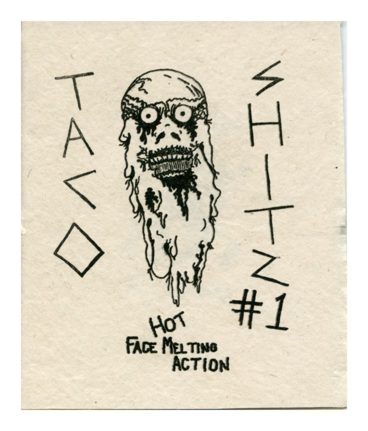 The cover is white paper with a skull drawn in black with a melting face. The title is also written in black ink.Collection