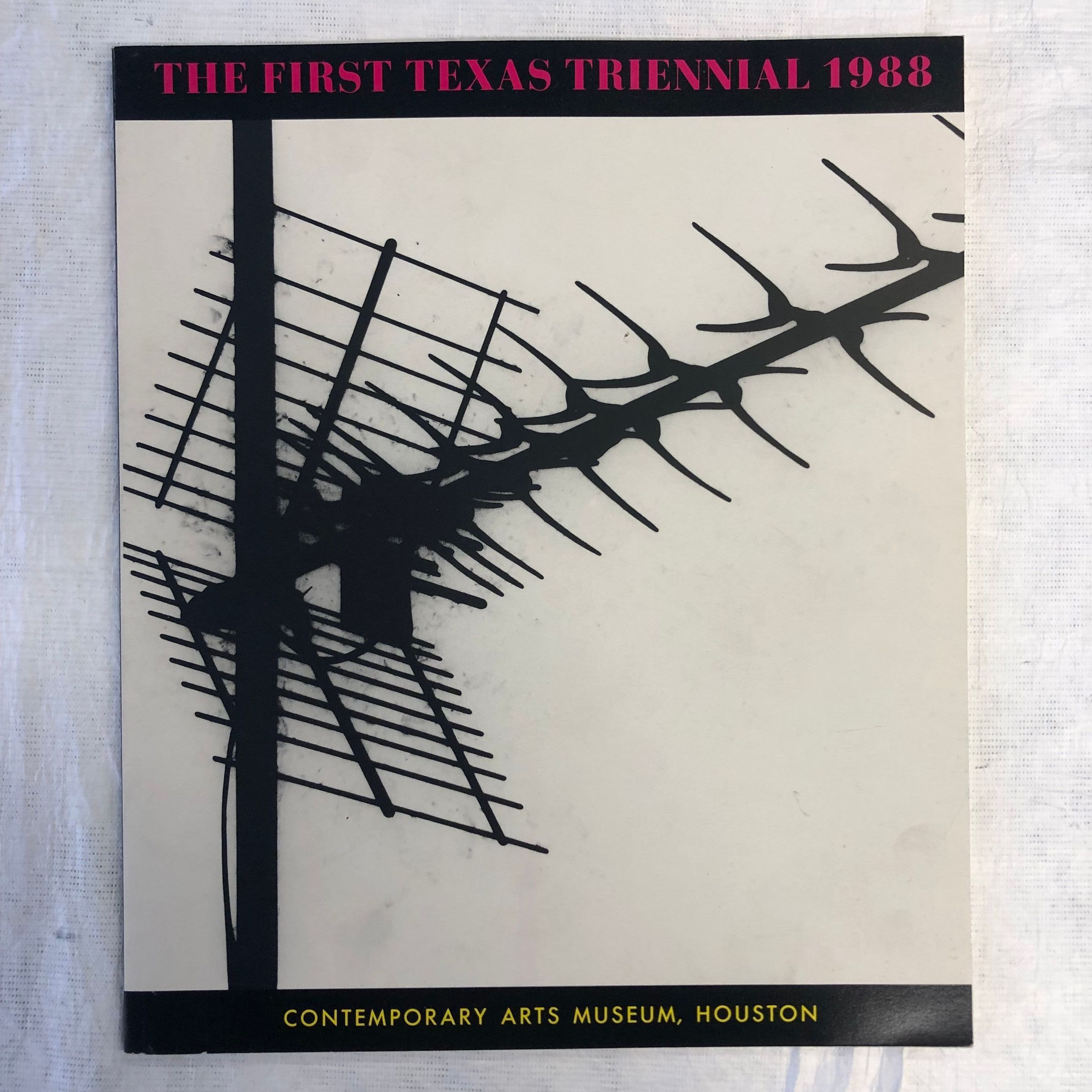 A medium sized, thin white book with the title against a black border in pink at the top, a photo central across the front and back cover depicting telephone poles. The interior contains an exhibition catalogue with an introduction to the exhibition and artists, the images in color.Collection