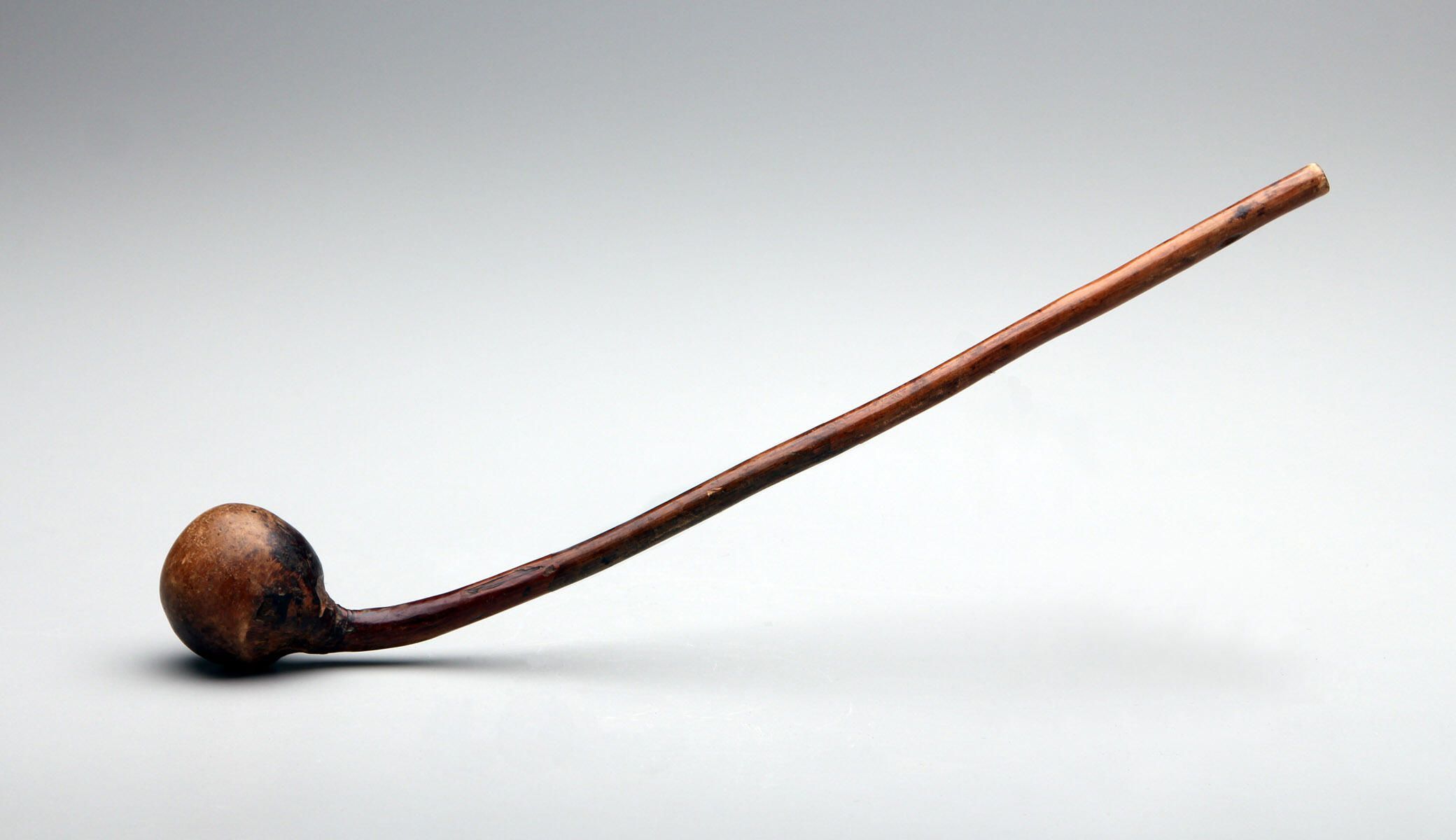 A long narrow wooden shaft, used for a handle, with a heavy knob or ball at the end.Collection
