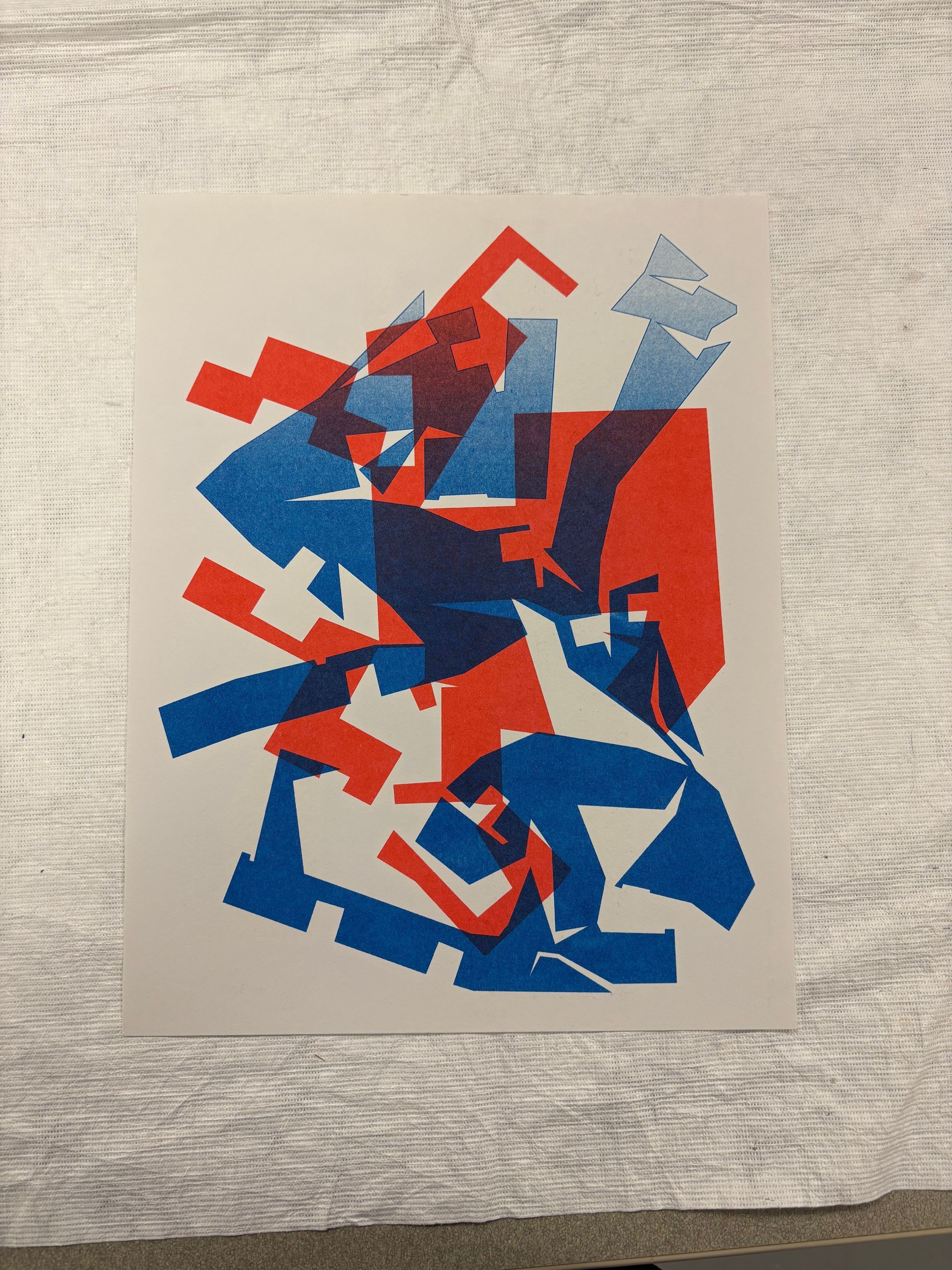 A two-sided vertical risograph created on letter sized paper. The work features objects that are abstract and position on top of or next to one another.Collection