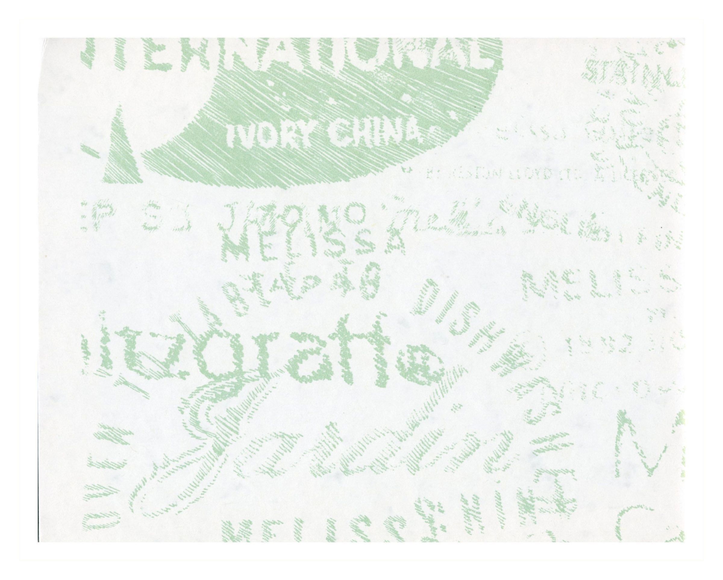 Zine with 24 pages (plus front and back covers) including drawings of Melissa, patterned china, and flatwareCollection