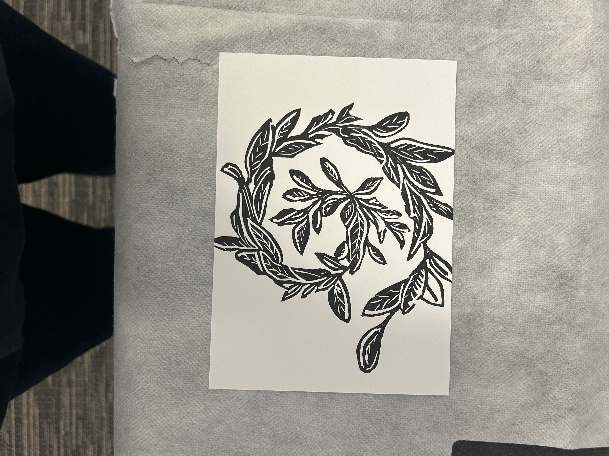 A small black and white print of a plant spiraledCollection