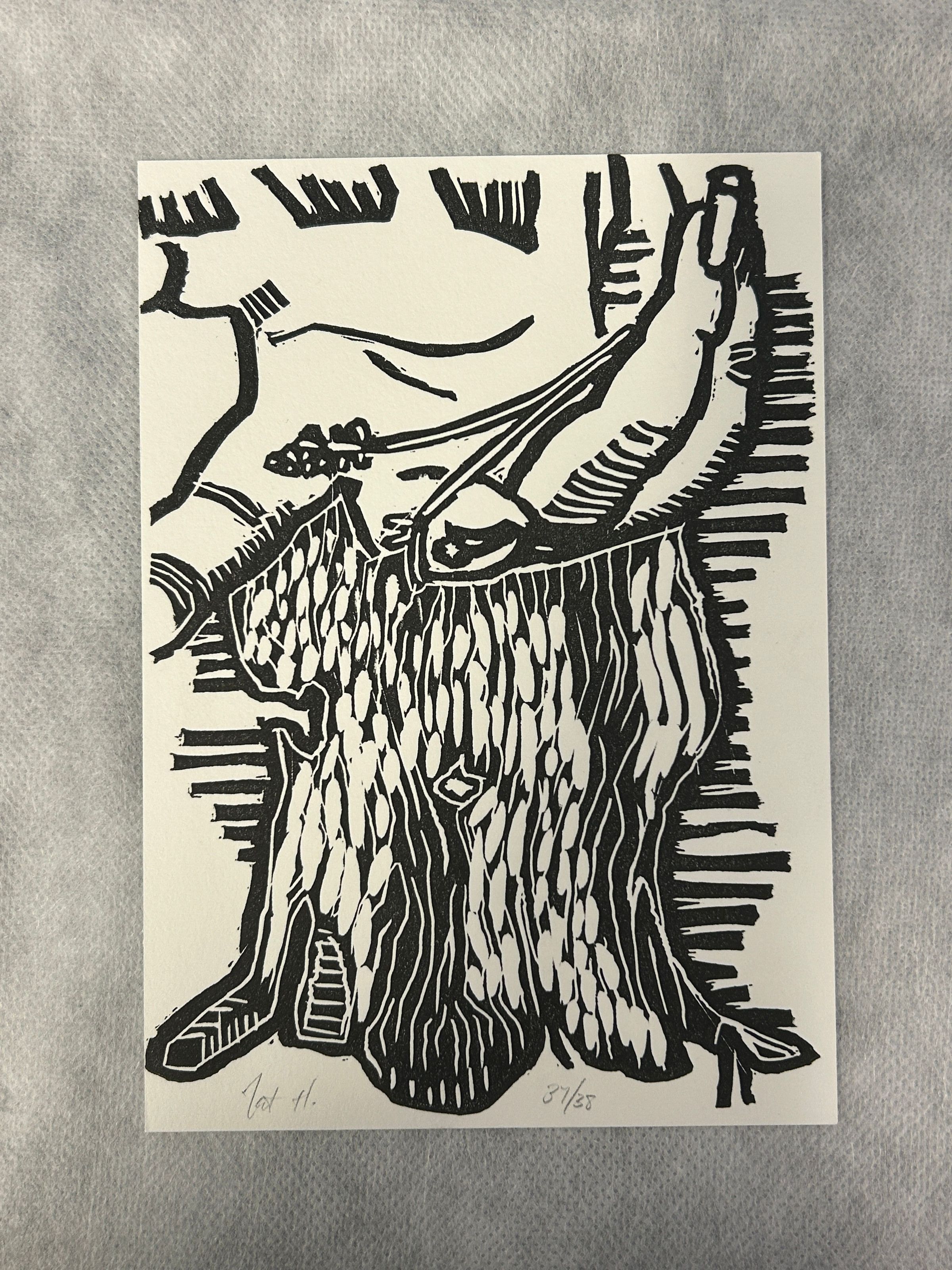A small black and white print of a hand reaching out holding a small plantCollection