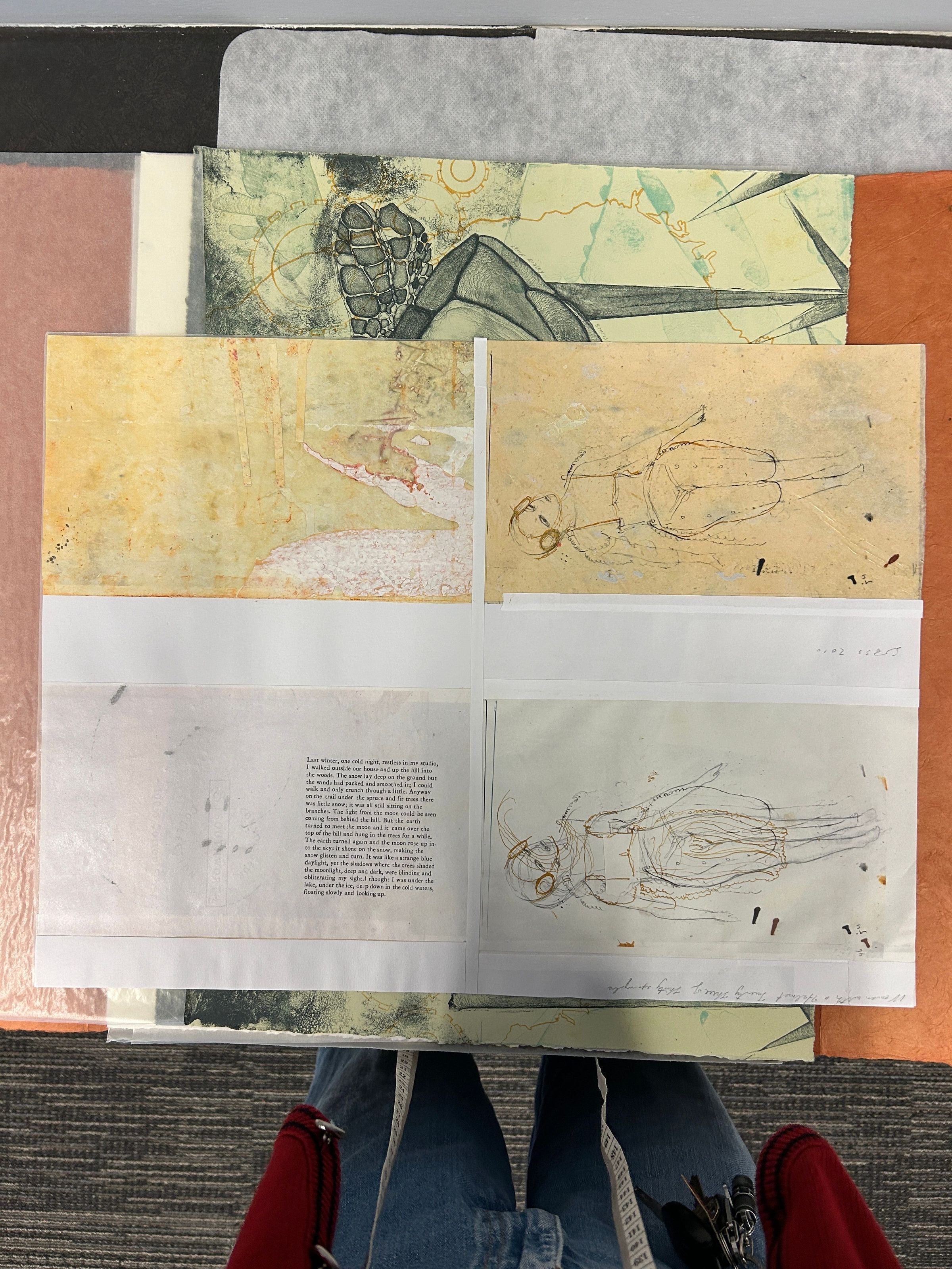 A large print/collage including an insert of a poem and imagery of two women wearing helmetsCollection