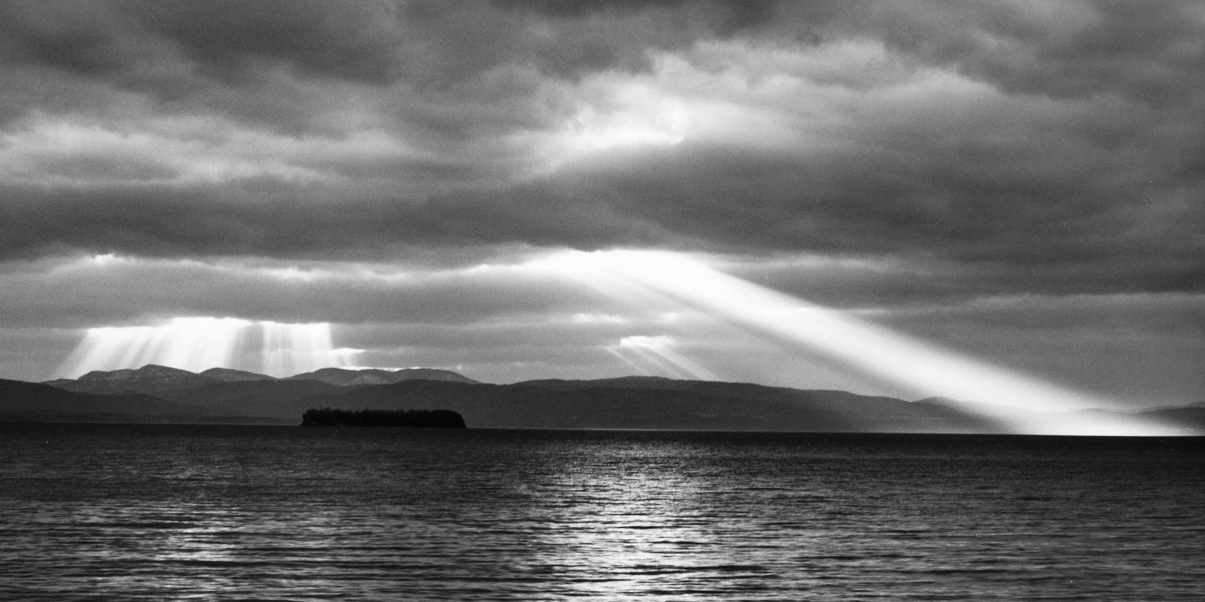 Black and White, Lake Champlain, Sunset, ReflectionDescription