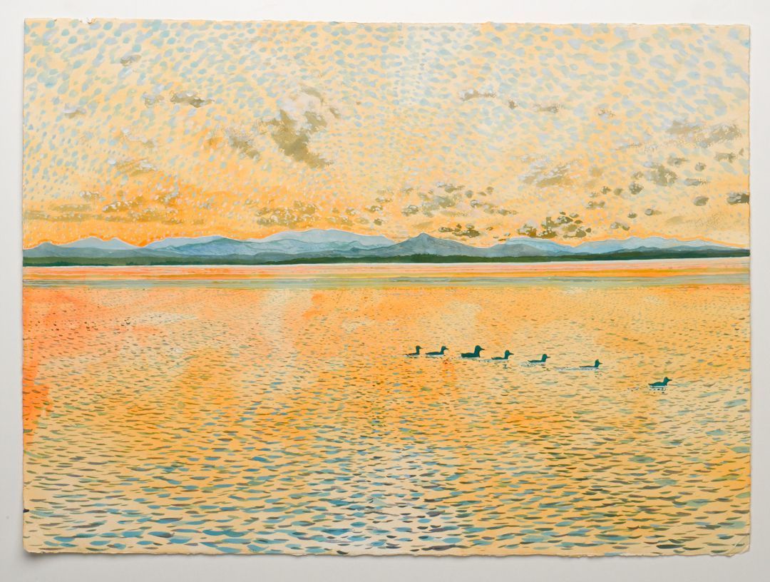 Blue, Lake Champlain, Orange, Sunset, Vermont, Water, BirdsDescription