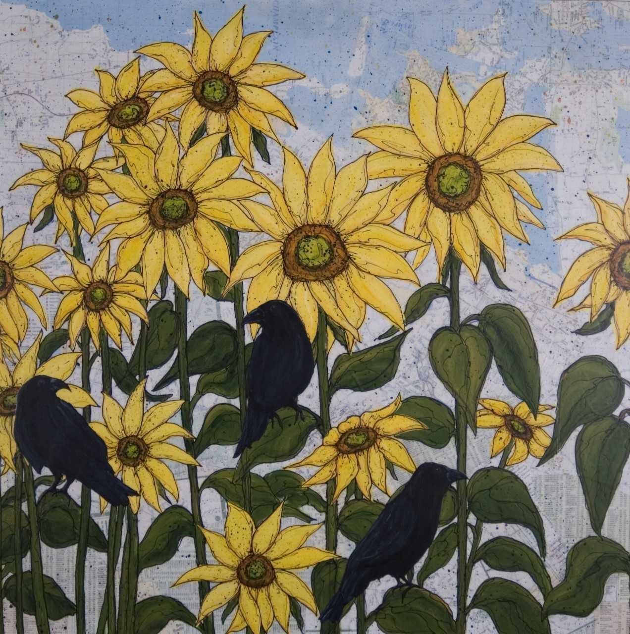 Abstract, Birds, Crows, Flowers, SunflowersDescription