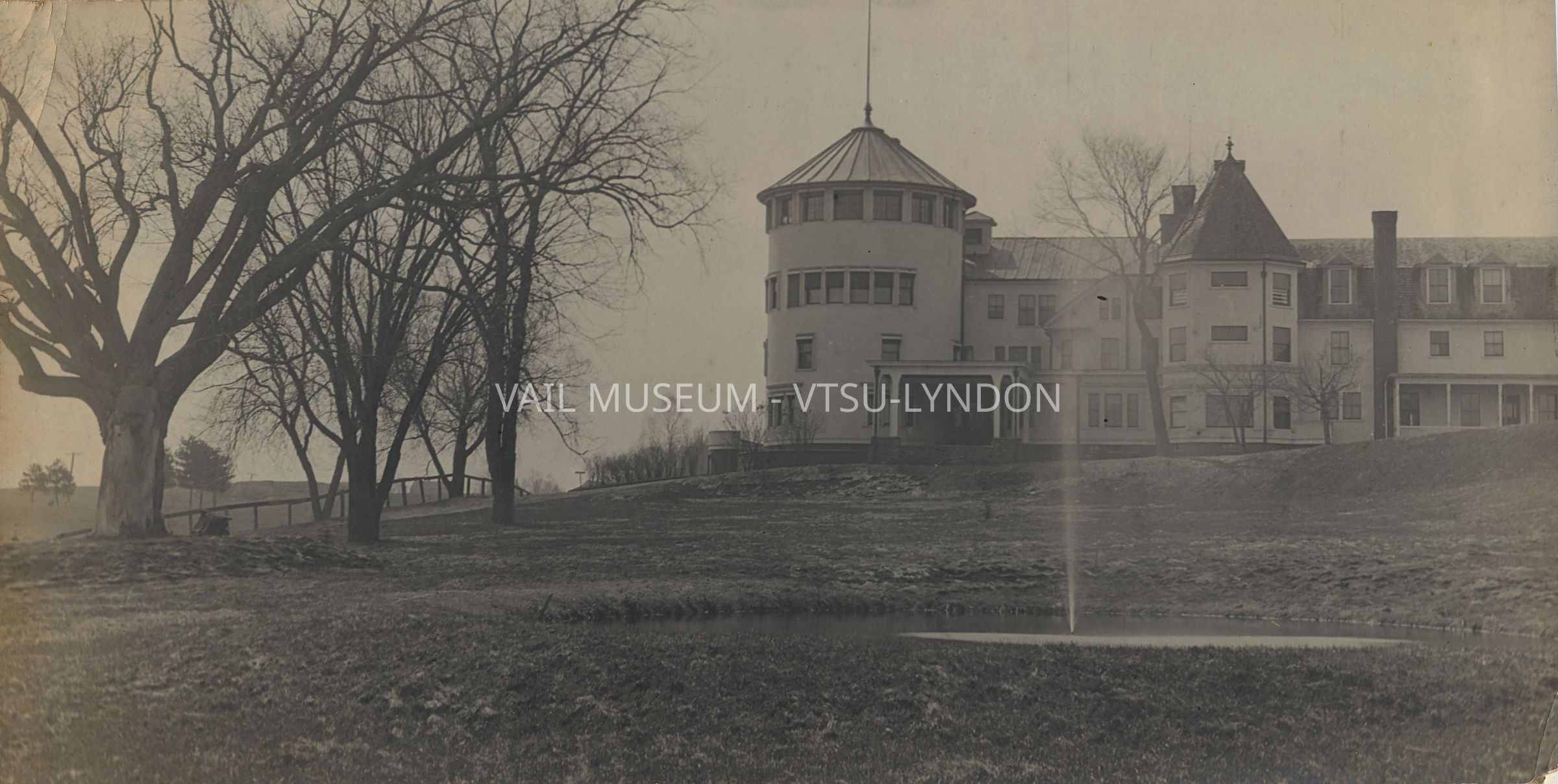This structure began as a modest farmhouse on the Bigelow property in Lyndon Center, Vermont. T.N. Vail, founding president of AT&T bought the property in 1883. Every summer, he had additions built onto the original farmhouse during the summer construction season in Vermont. He got a bit carried away. By the time T.N. Vail died in 1920, Vail Mansion had in excess of 100 rooms, a magnificent lobby, two towers, a mushroom cellar, carriage house and pony barn. The building ultimately became part of Lyndon Teachers College in 1951, which became Lyndon State College in 1961. Due to structural issues and the cost of trying to save the building, the State of Vermont decided to demolish the building in the fall of 1974. The building had been condemned a year earlier and sat unused while a final decision on its fate was decided. There were many LSC faculty/staff/student protests and an effort in the Vermont legislature to prevent the destruction of Vail Mansion, but those efforts ultimately fell short.Cataloged By