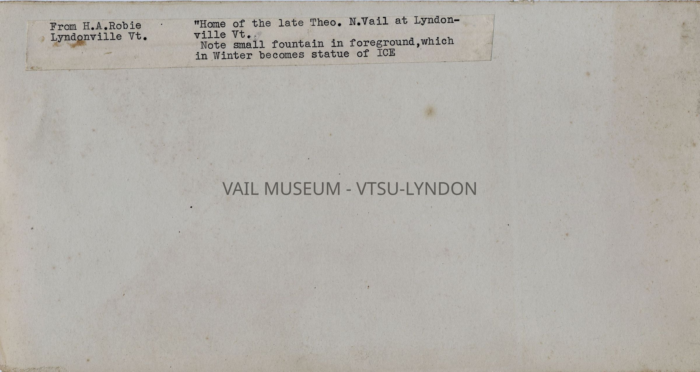 Vail Mansion - Circa 1920's - Lyndon Center, VermontEntry/Object ID