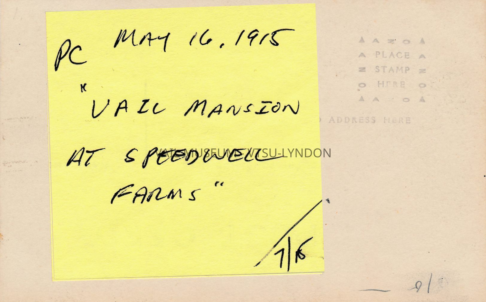 Vail Mansion At Speedwell Farms - 1915 - from the David & Beth Kanell Collection