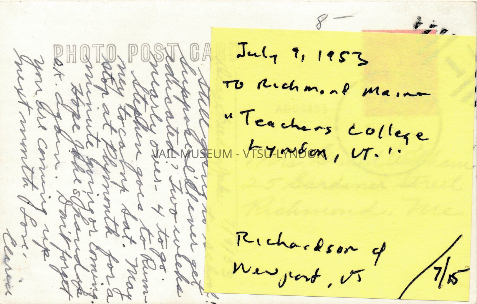 Vail Mansion as Lyndon Teachers College Postcard - from the David & Beth Kanell Collection