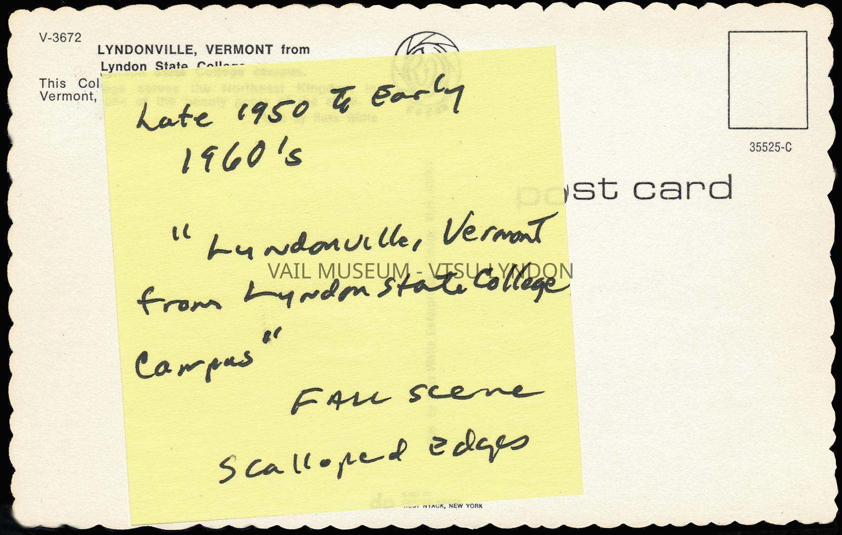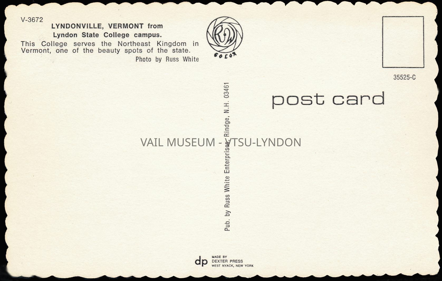 For every student of Lyndon Teachers College, Lyndon State College and subsequent iterations of the institution, this has been the primary scenic view since 1951, when the college first moved to Vail Hill.Cataloged By
