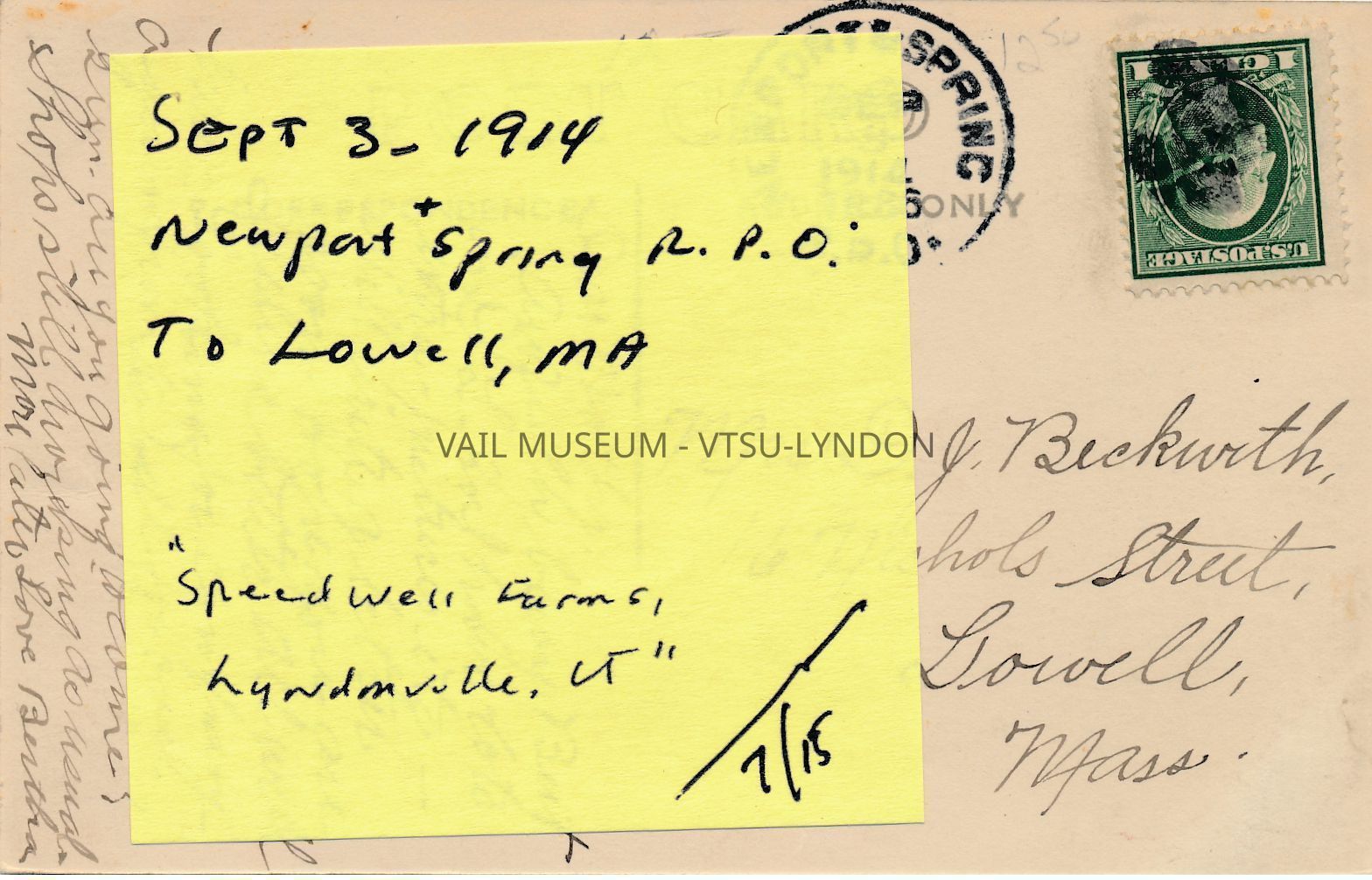 Speedwell Farms Lyndonville, VT - Circa 1914 Postcard - from the David & Beth Kanell CollectionEntry/Object ID