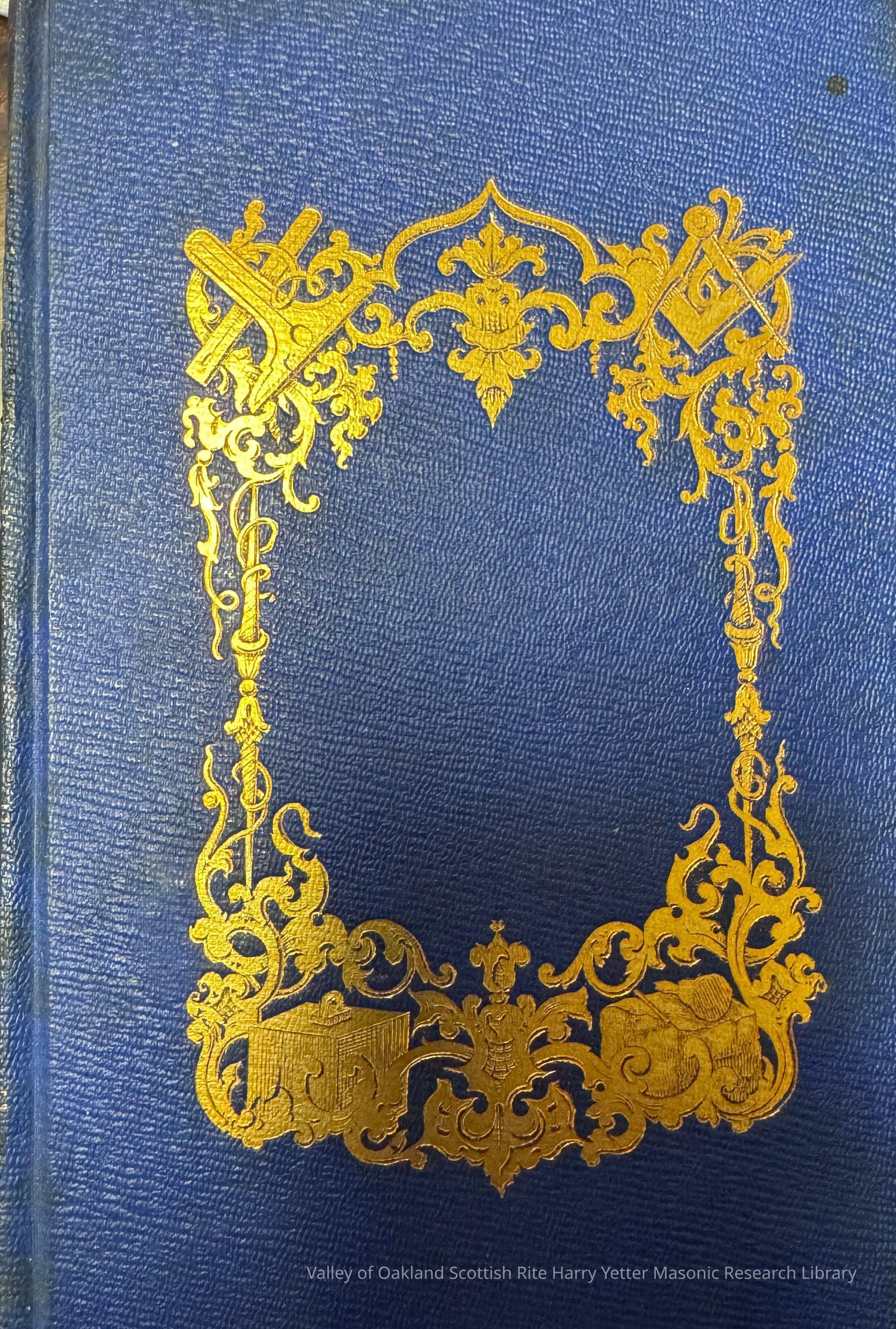 Starck's name is alternatively spelled as 'Stark", and the first initial is incorrectly given as "D." The case is decorated with embossed Masonic decoratives, although the book isn't necessarily Masonic. It was likely re-bound at the direction of Charles Gillett.Location