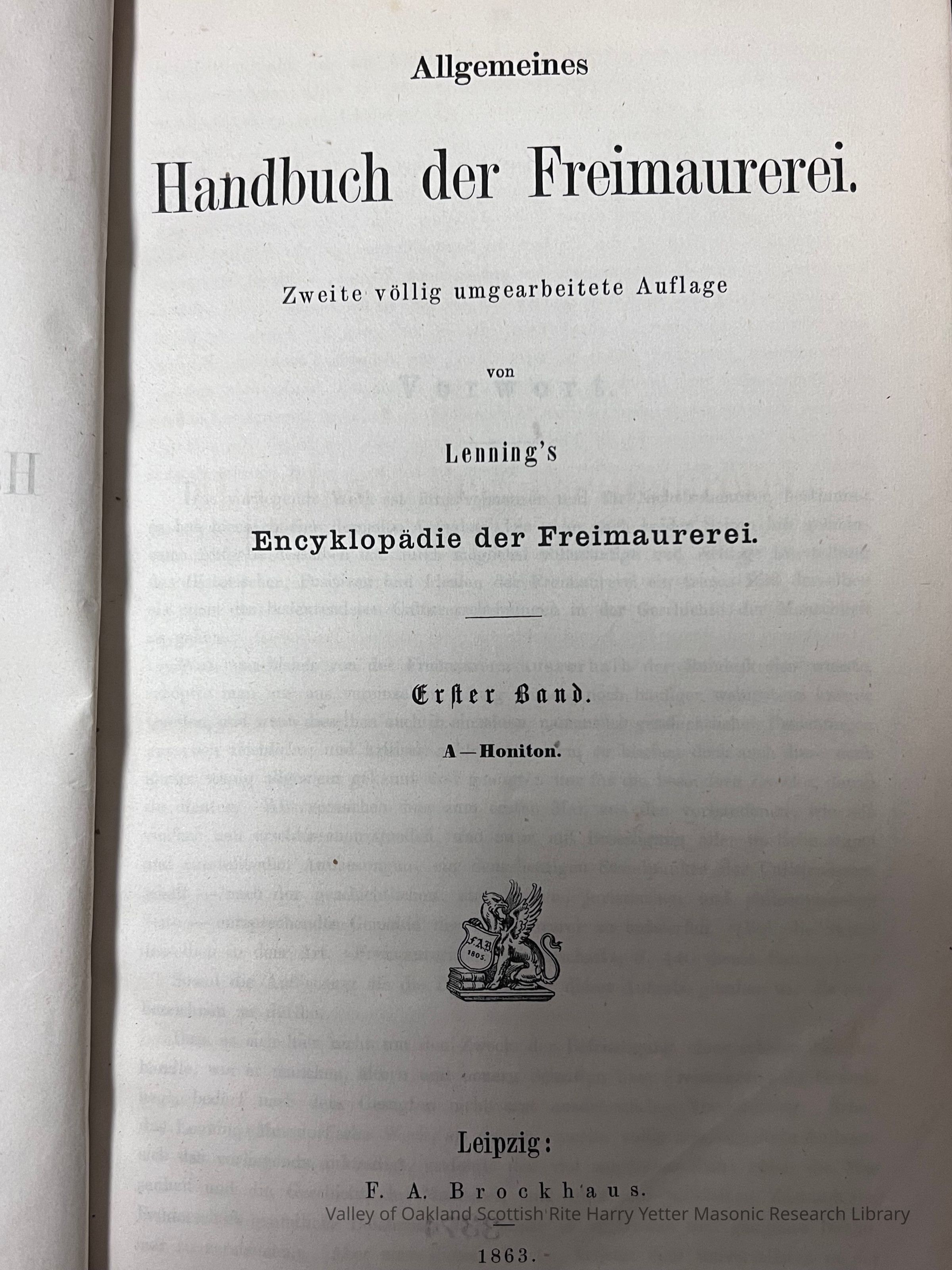 Allgemeines Handbuch der Freimaurerei. Zweite völlig umgearbeitete Auflage von Lenning's Encyklopädie der Freimaurerei. Erster BandEntry/Object ID