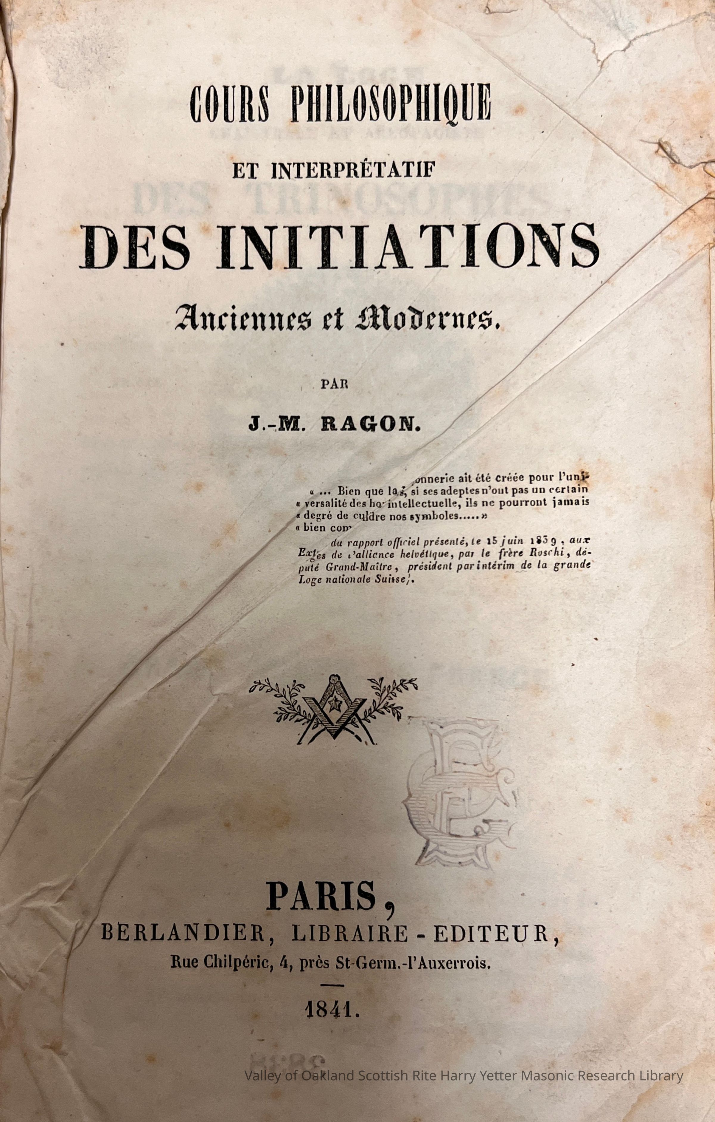 Cours Philosophique et Interprétif des Initiations Anciennes et ModernesEntry/Object ID