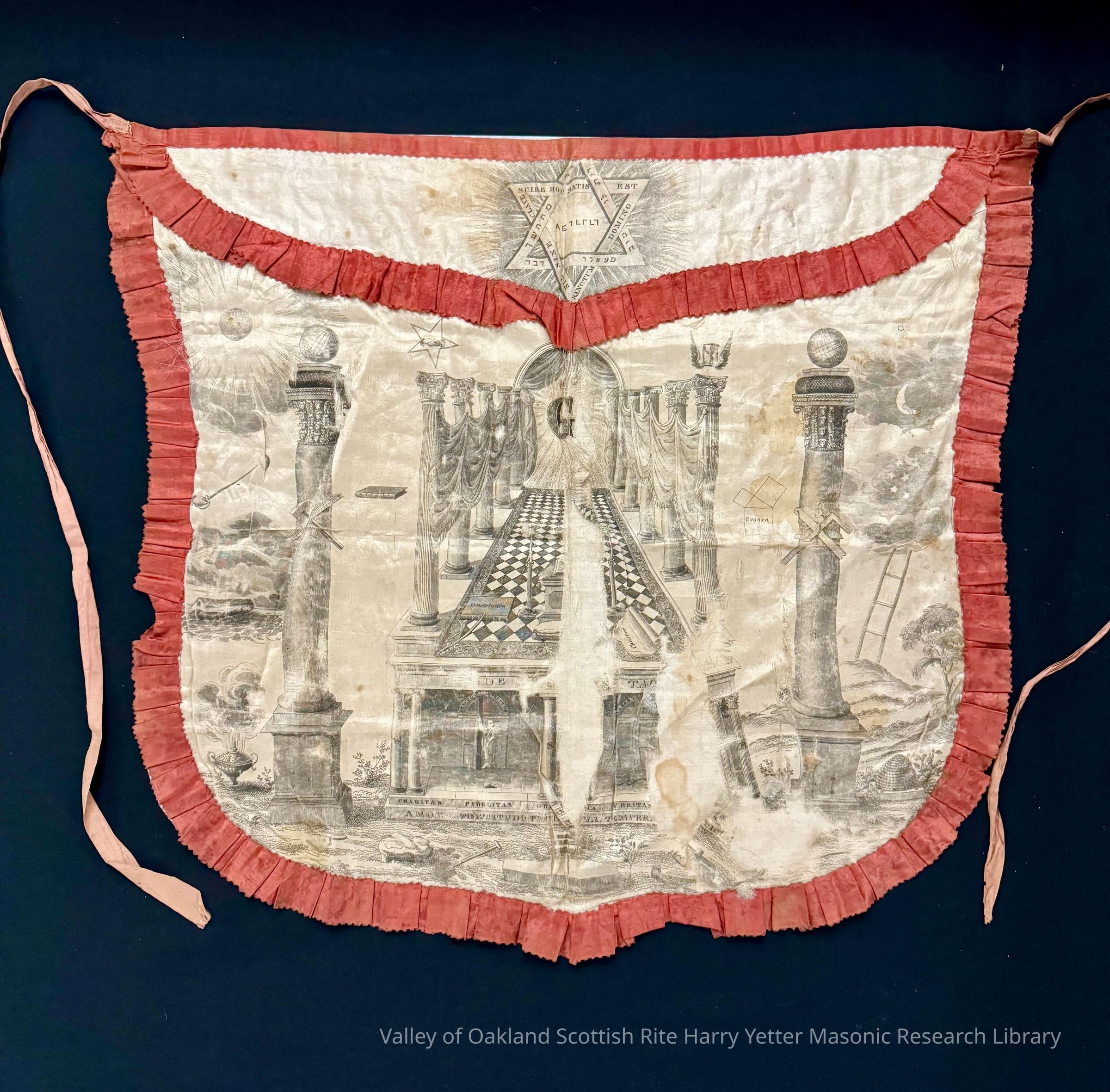 Printed silk apron displaying elaborate Craft and Royal Arch symbologyContext