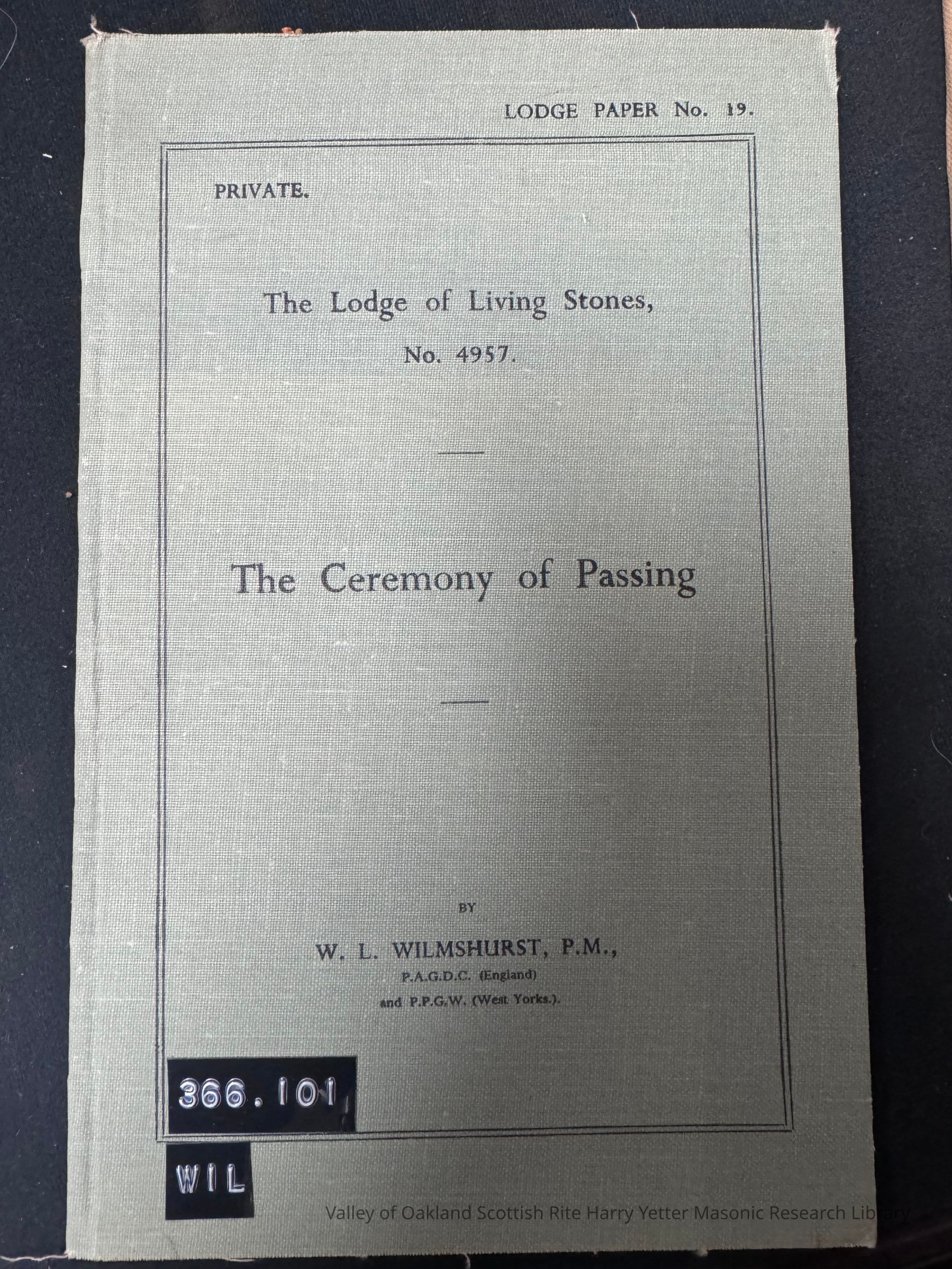 Manual for the ceremony of Passing for The Lodge of Living Stones, No. 4957 (EC)Collection