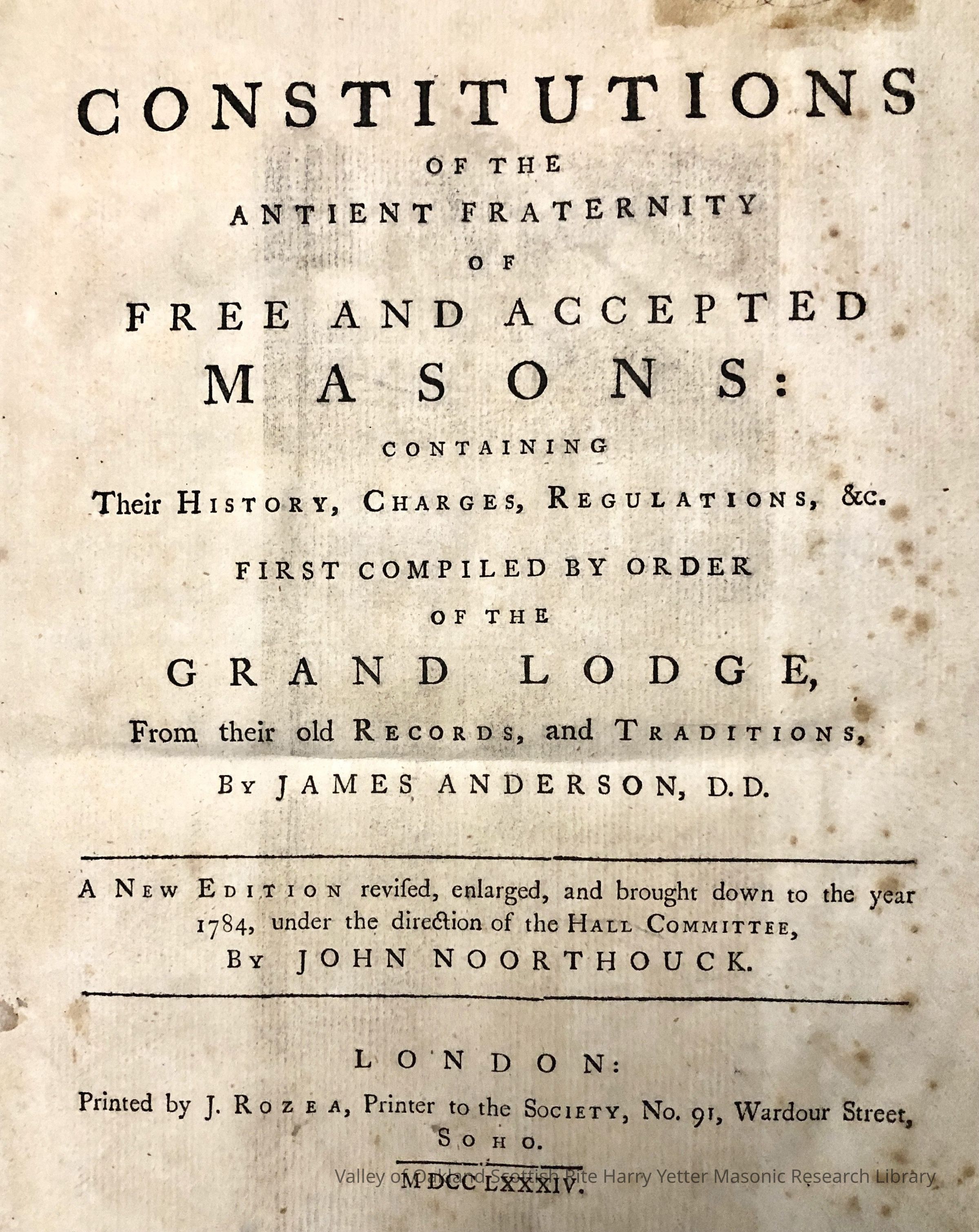 Constitutions of the Antient Fraternity of Free and Accepted Masons (James Anderson, Noorthouck Edition, 1784)Entry/Object ID