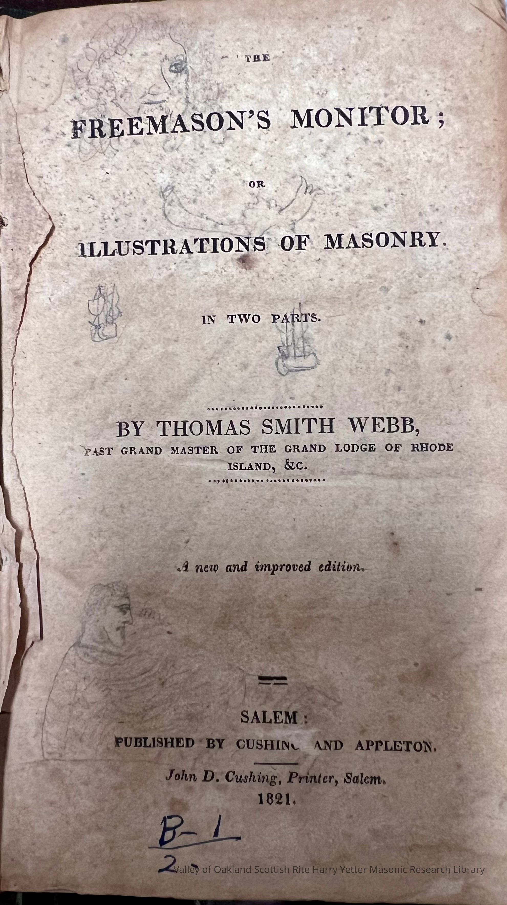 Thomas Smith Webb's influential work that influenced the landscape of Freemasonry in the United States.Collection