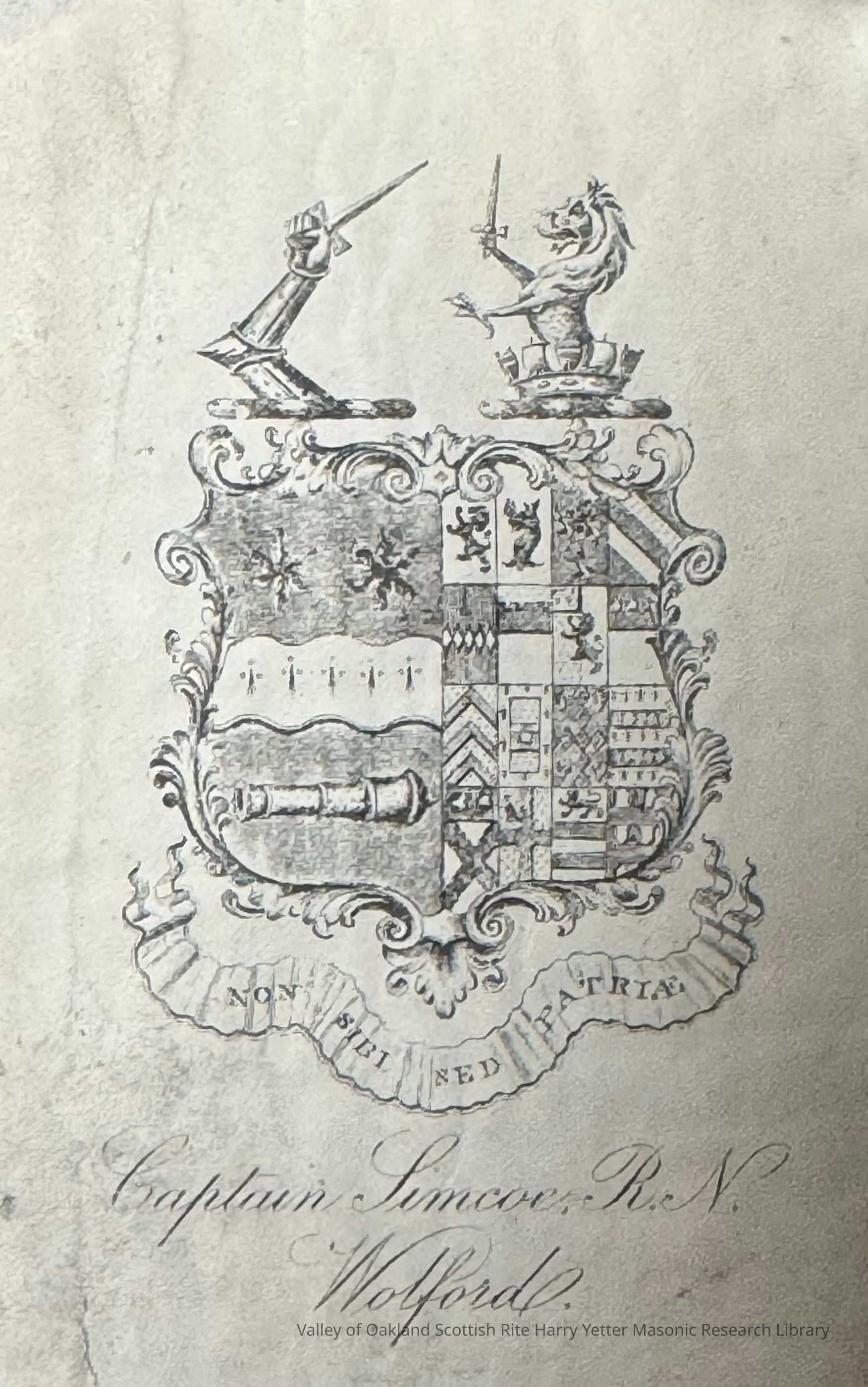 This book may have belonged to Captain John Simcoe, captain of the HMS Pembroke during the Seven Years' War. He was the father of John Graves Simcoe, the first Lieutenant Governor of Upper Canada.Collection