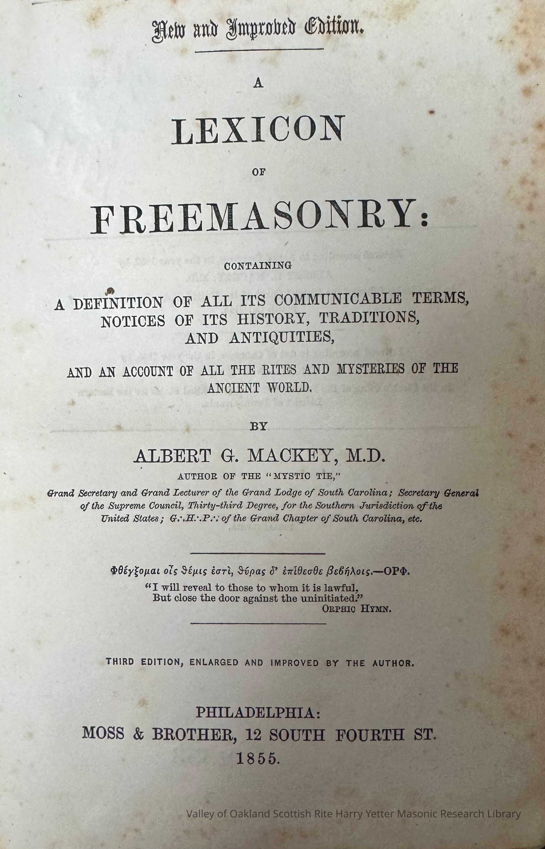 Mackey, Albert G.Edition