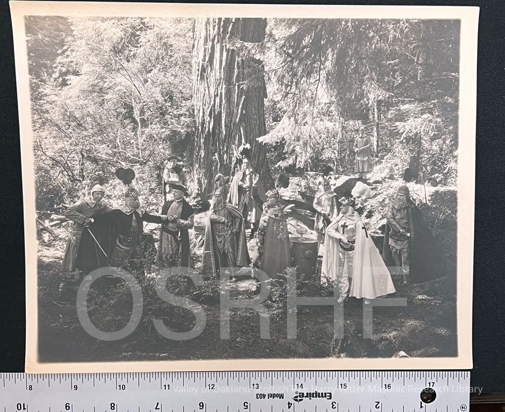 Shown here is a 1923 photograph of Oakland brethren posing in a lush Humboldt County redwood forest, dressed for the 21st Degree: "Noachite, or Prussian Knight."Collection