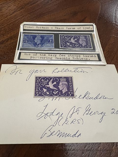 These stamps commemorate peace following WWII. From St. George Lodge, BermudaCollection