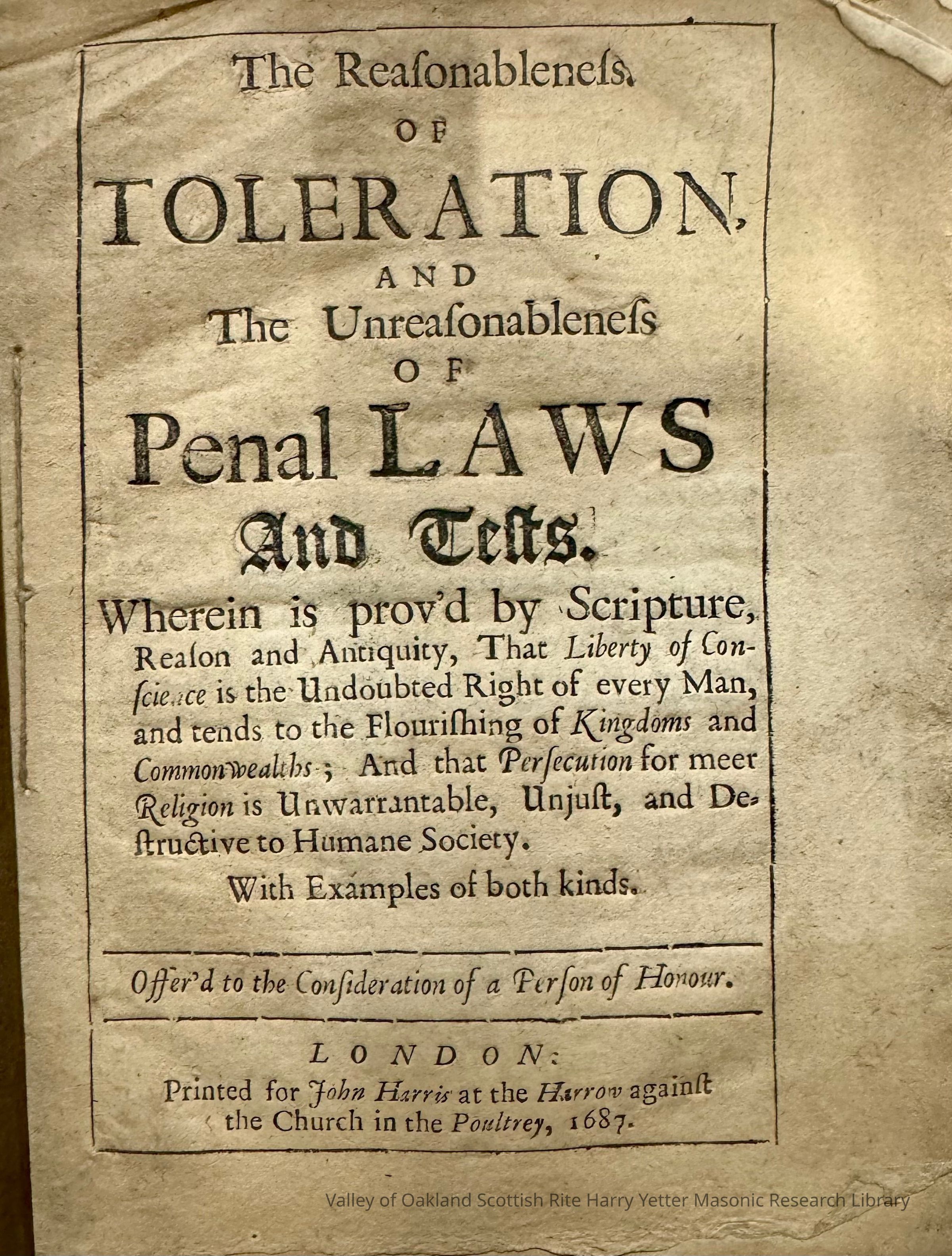 Reasonableness of Toleration, TheEntry/Object ID