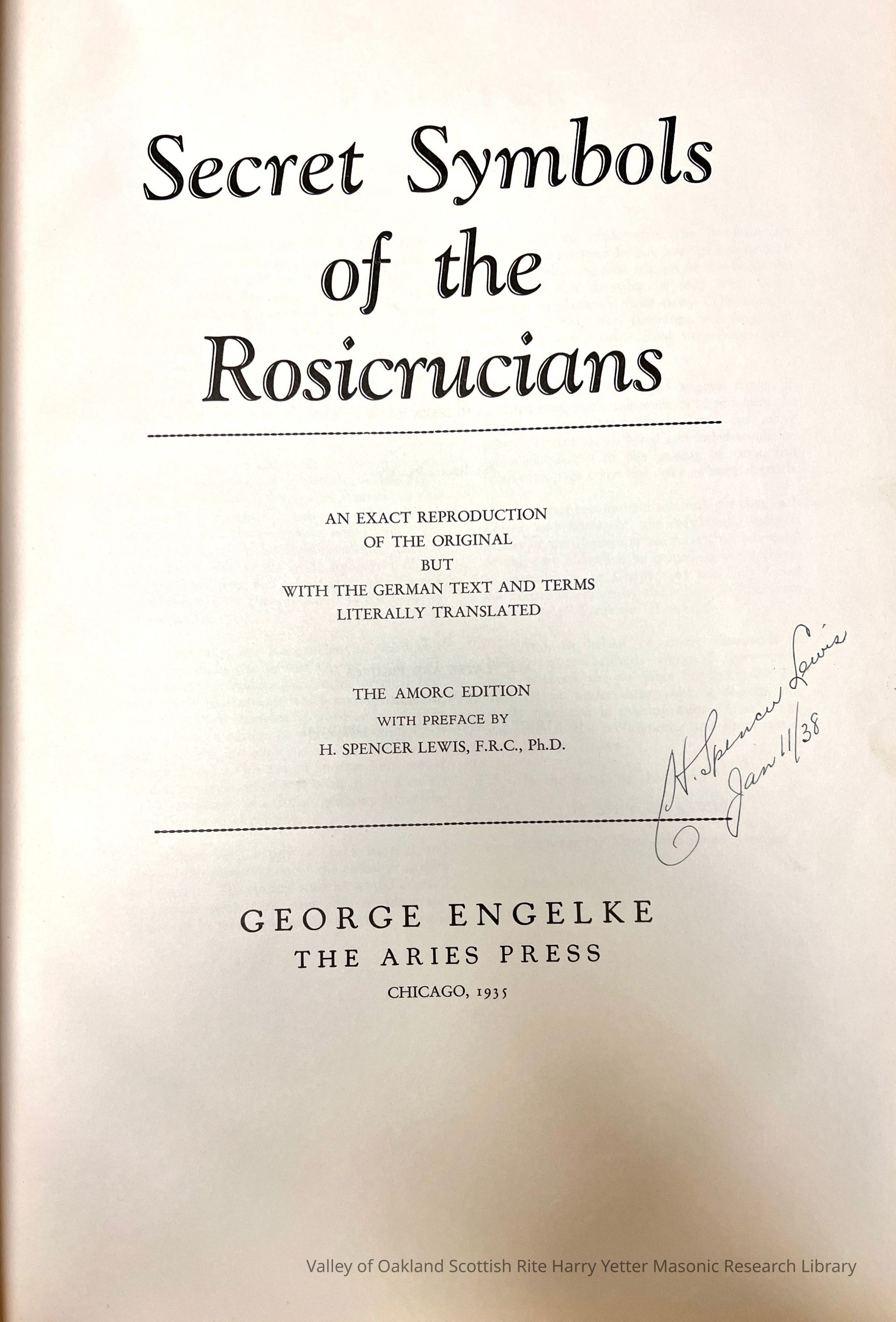 A compendium of German Rosicrucian texts and images from the 16th and 17th centuries. This is the AMORC Edition, and is signed by H. Spencer Lewis, the first Imperator of Ancient and Mystical Order Rosae Crucis (AMORC) 1915–1939.Collection