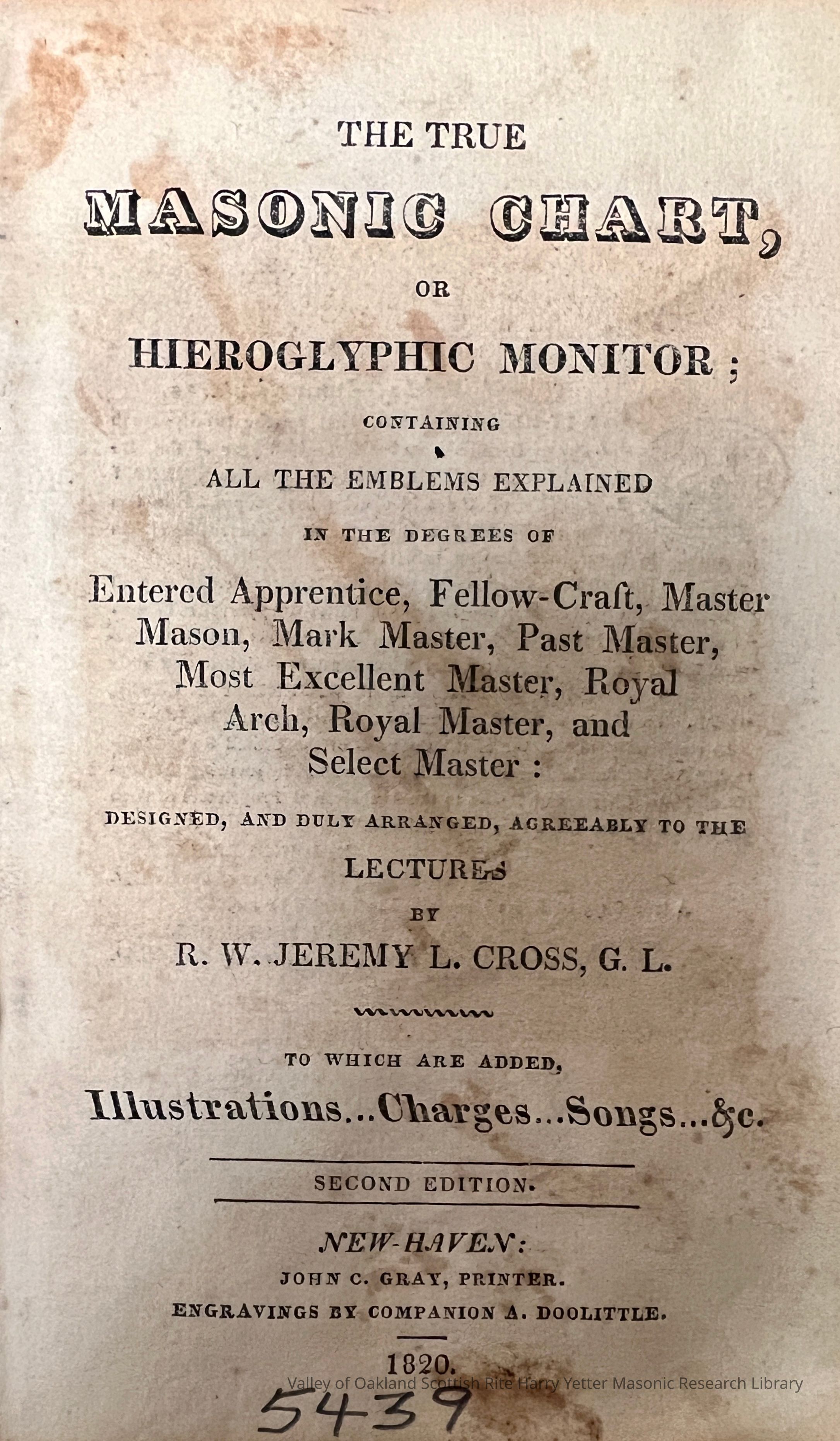 Hieroglyphic Monitor Containing All the Emblems Explained in the Degree of Entered Apprentice, Fellow-Craft, master Mason, Mark Master, Past Master, Most Excellent Master, Royal Arch, Royal Master, and Select Master: Designed, and Duly Arranged, Agreeably to the Lectures by R. W. Jeremy L. Cross, G.L., to Which are Added, Illustrations, Charges, Songs, &c.Collection