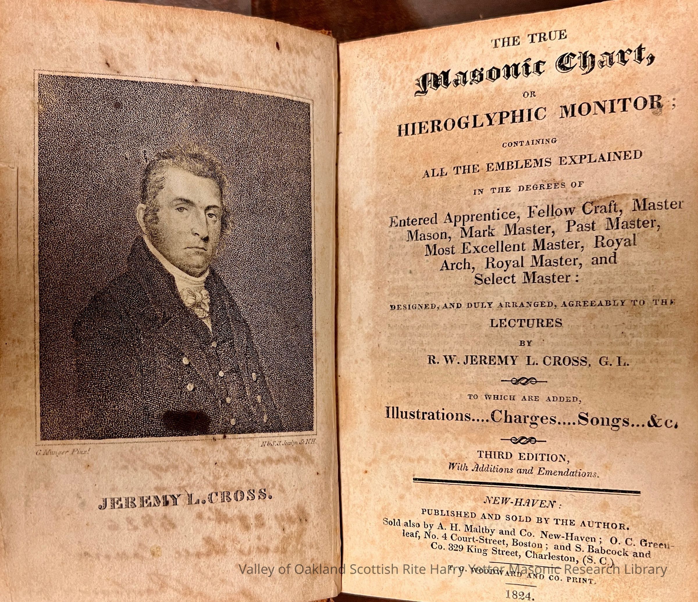 Hieroglyphic Monitor Containing All the Emblems Explained in the Degree of Entered Apprentice, Fellow-Craft, master Mason, Mark Master, Past Master, Most Excellent Master, Royal Arch, Royal Master, and Select Master: Designed, and Duly Arranged, Agreeably to the Lectures by R. W. Jeremy L. Cross, G.L., to Which are Added, Illustrations, Charges, Songs, &c.Collection